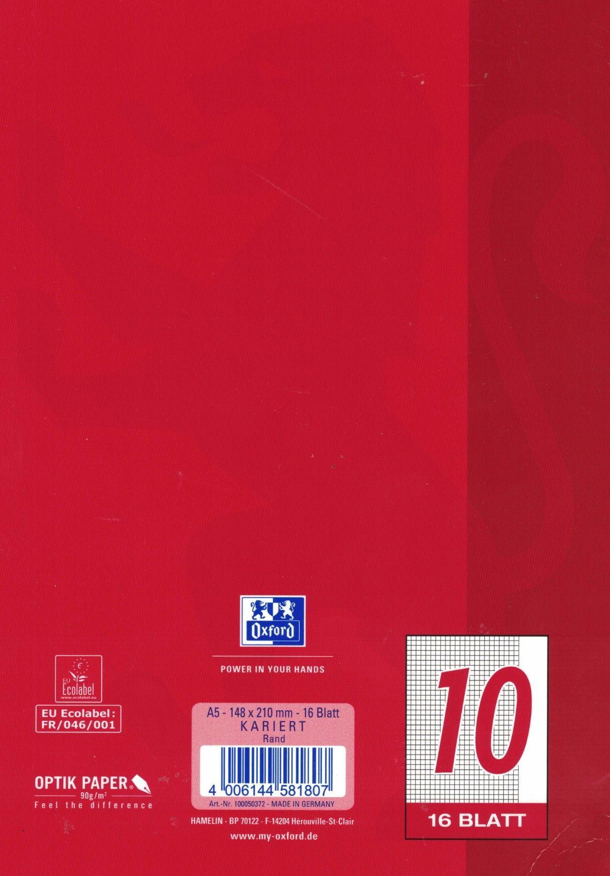 Oxford OXFORD Schulheft DIN A5 Kariert 10