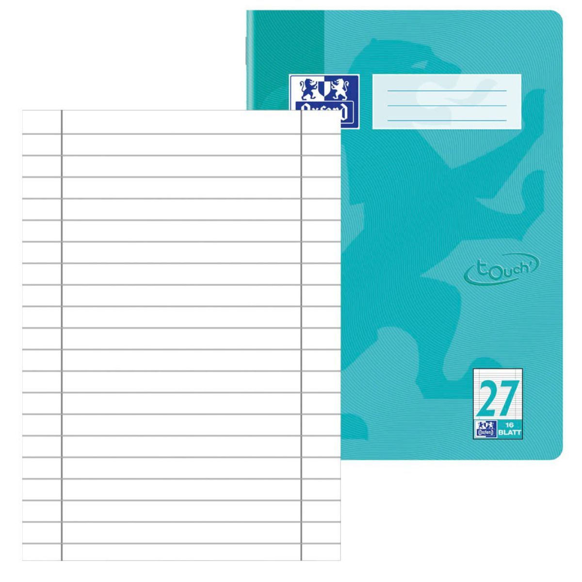 OXFORD Touch Schulheft A4 L27 liniert und geheftet 16 Blatt in Aqua