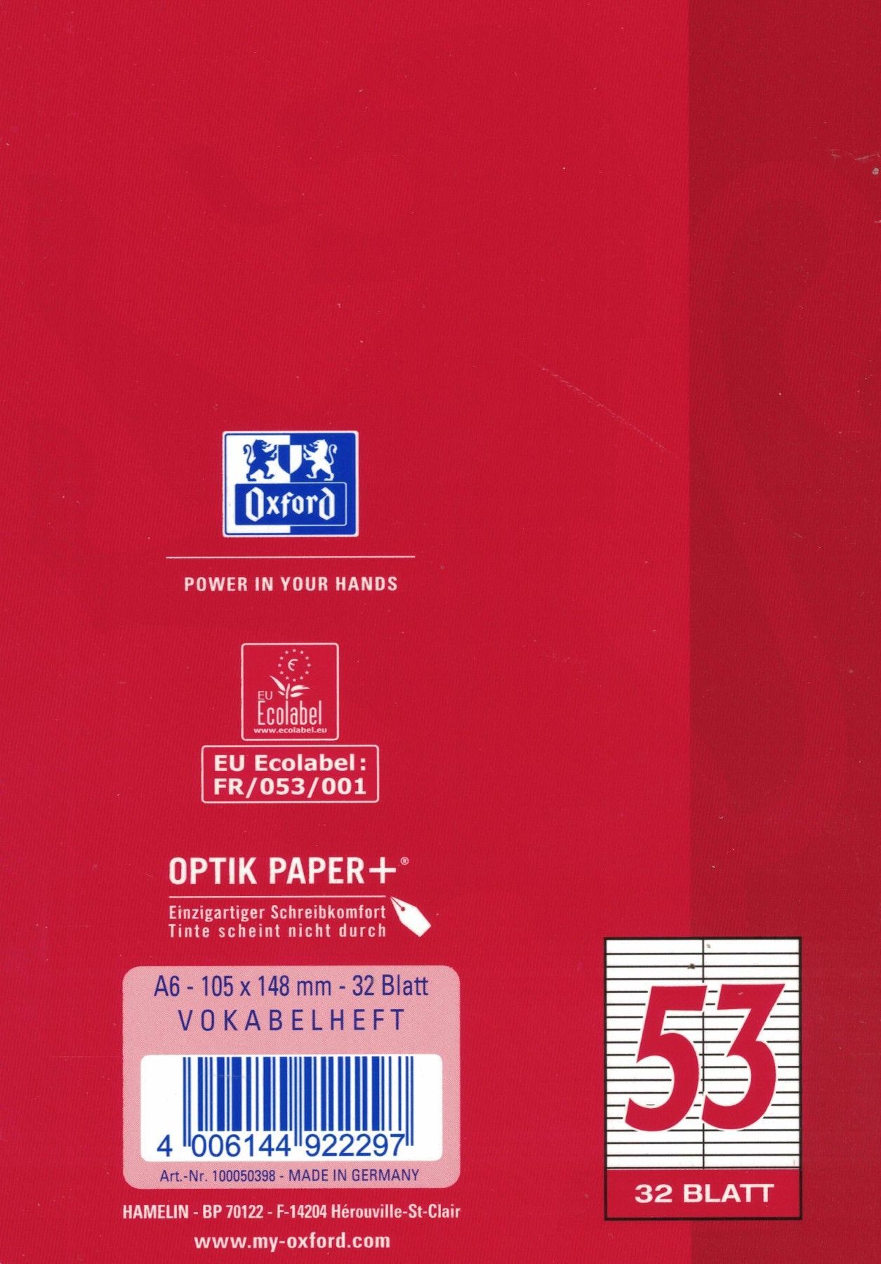 Oxford OXFORD Vokabelheft DIN A6 Liniert