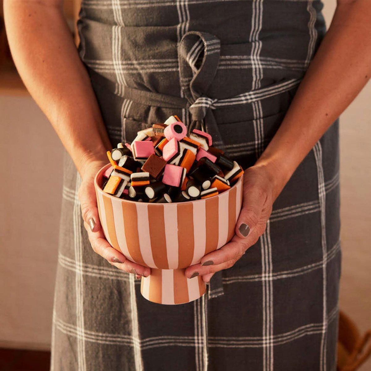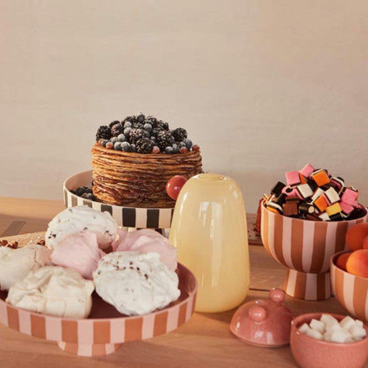 OYOY L10233 - Bowl Toppu - Keramikschale im Streifen-Design - Dekoschale auf Fuß