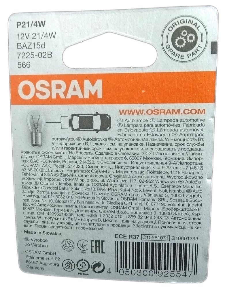 Osram P21/4W OSRAM Original Spare Part 2st. 12V 21W/4W Blister 7225-02B