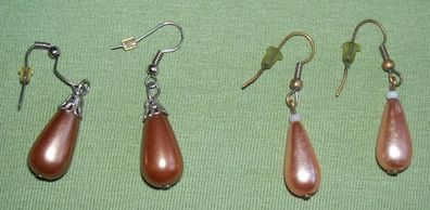 2 Paar Ohrringe Ohrhänger Tropfen Perle Rosa Hellbraun Glanz L=4,5cm Ohrschmuck