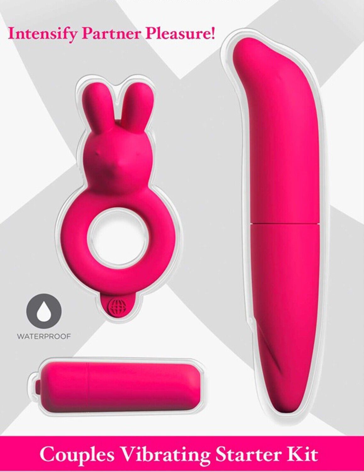 Paar Toy Set Pink Vibrator, Bunny Penisring, Vibrobullet - Sexspielzeuge
