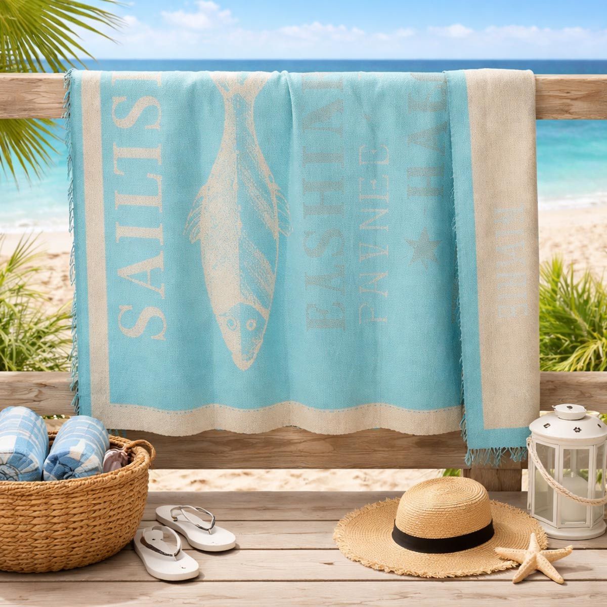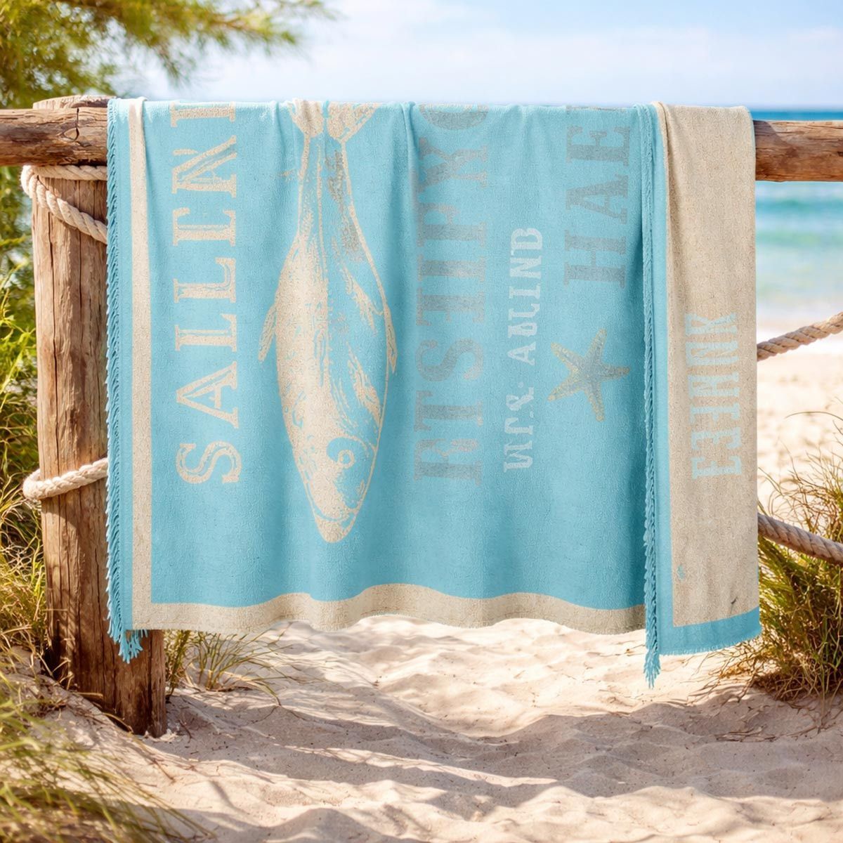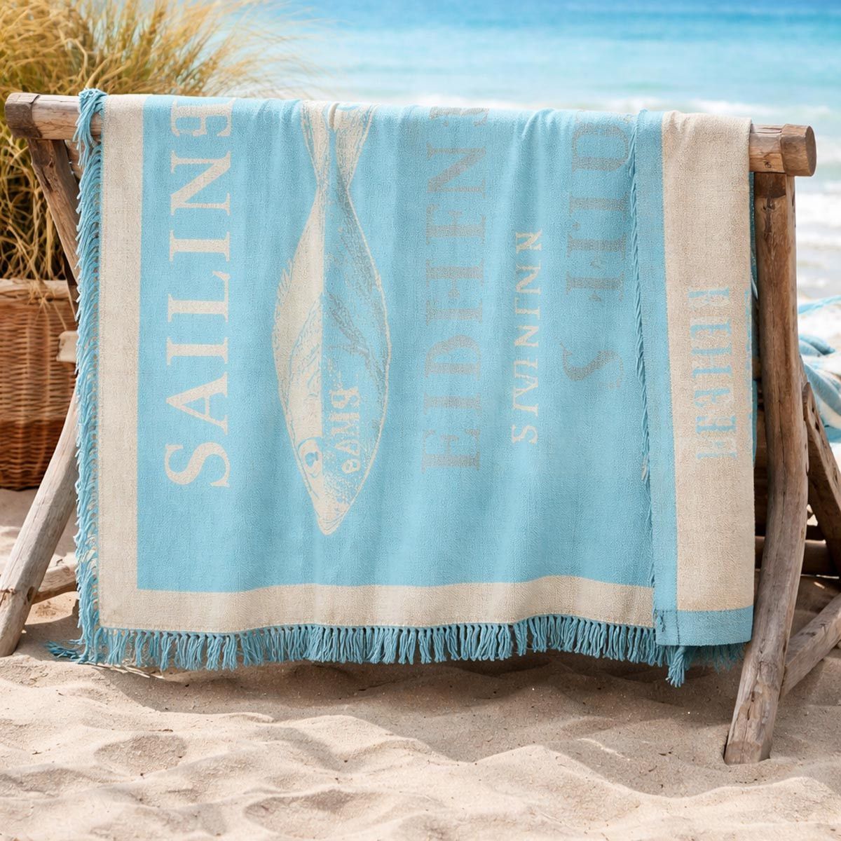 PAD - Decke Sea - Wohndecke Meer - Maritime Fransendecke - 150 x 200 cm | 10399.1