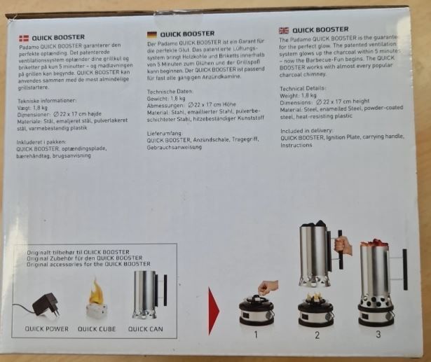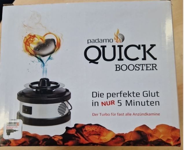 Padamo Quickbooster Grillkohlenanzünder Q-B-1 Silber 21x21x17cm Turbo NEU