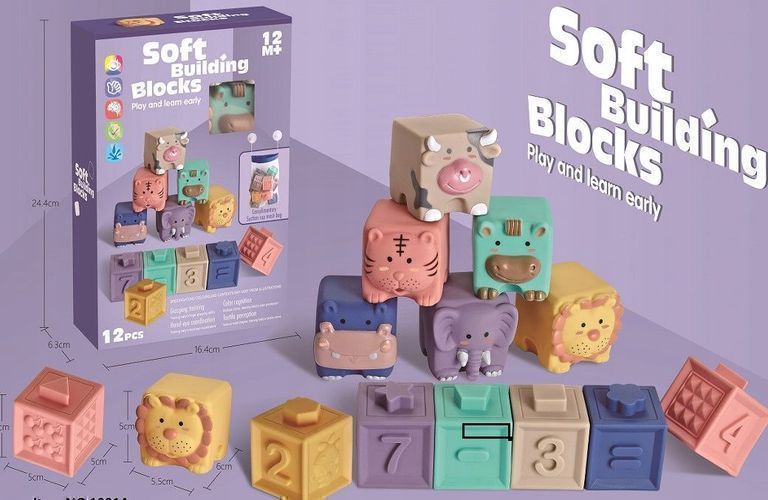 Pädagogisches Bauklötzchen SET Weichbausteine TIERE Figuren GEO