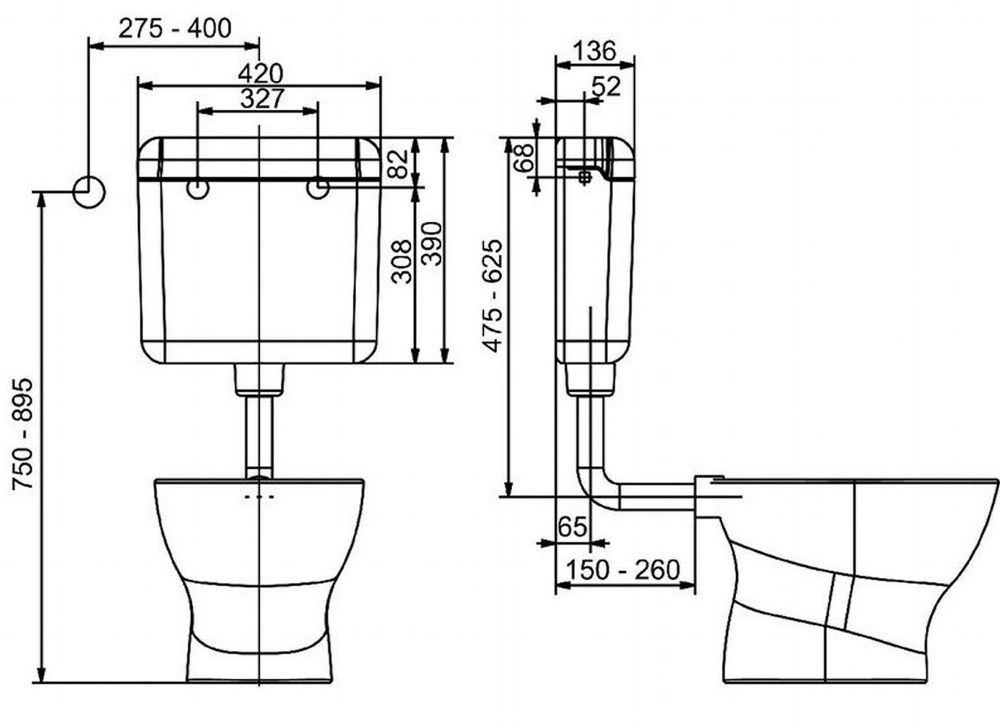 Toto Pagette Sanibel WC Aufputz Spülkasten Ecotop weiss Austausch zu Geberit 6 - 9 Liter