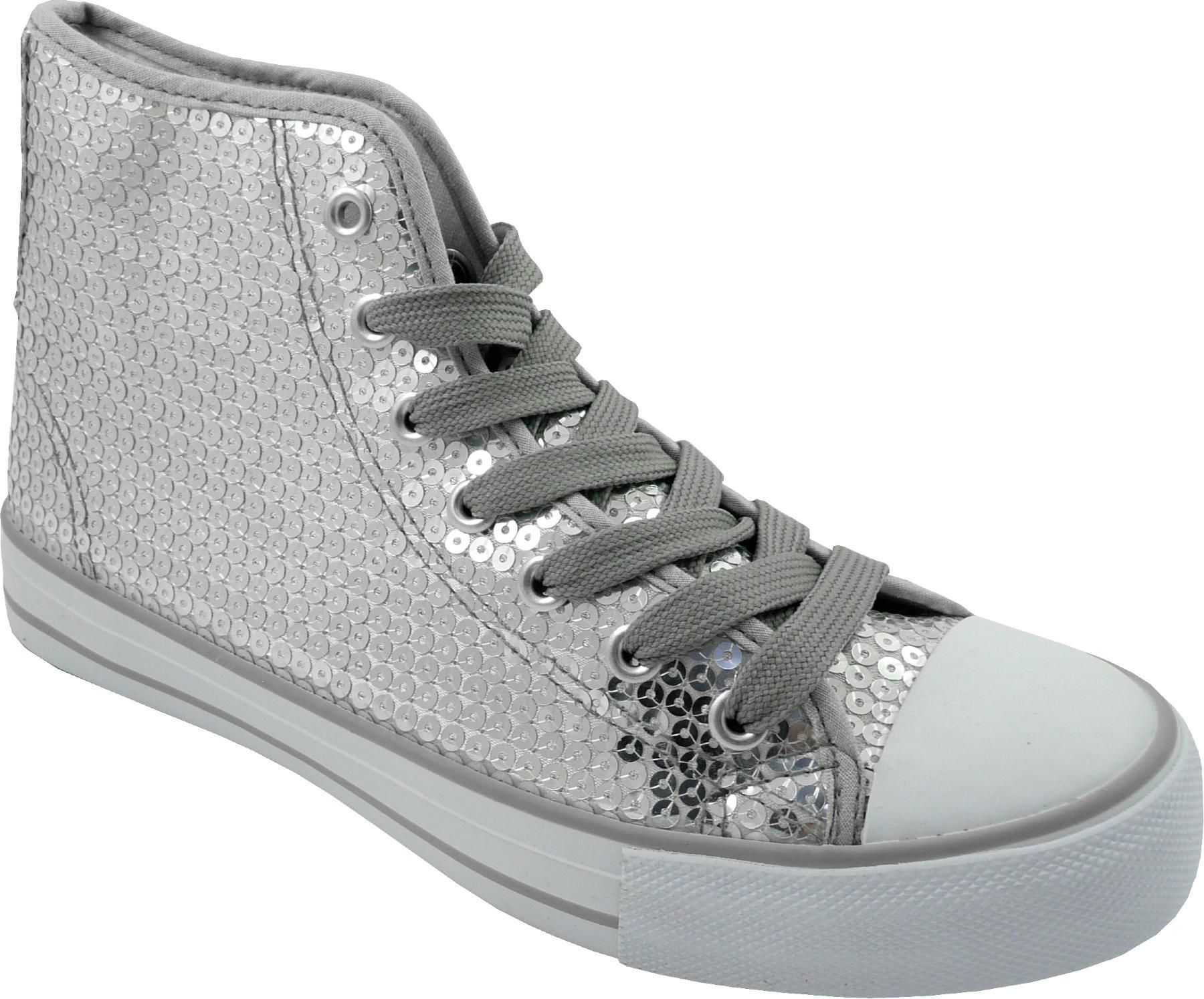 Pailletten Sneaker silber Space Disco Turnschuhe Glitzerschuhe Karneval Fasching