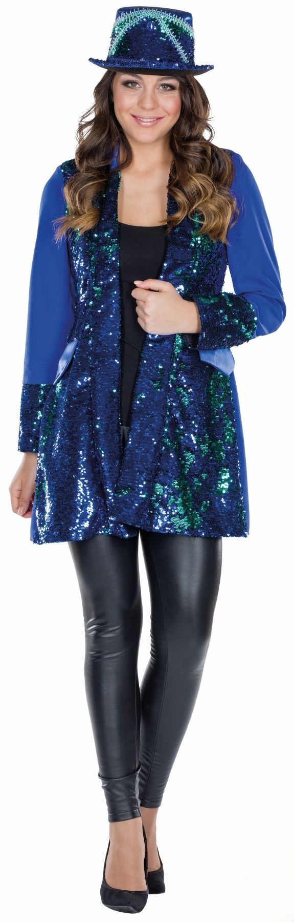 Paillettenjacke Gehrock mit Pailletten Damen blau Glitzerjacke Karneval Fasching