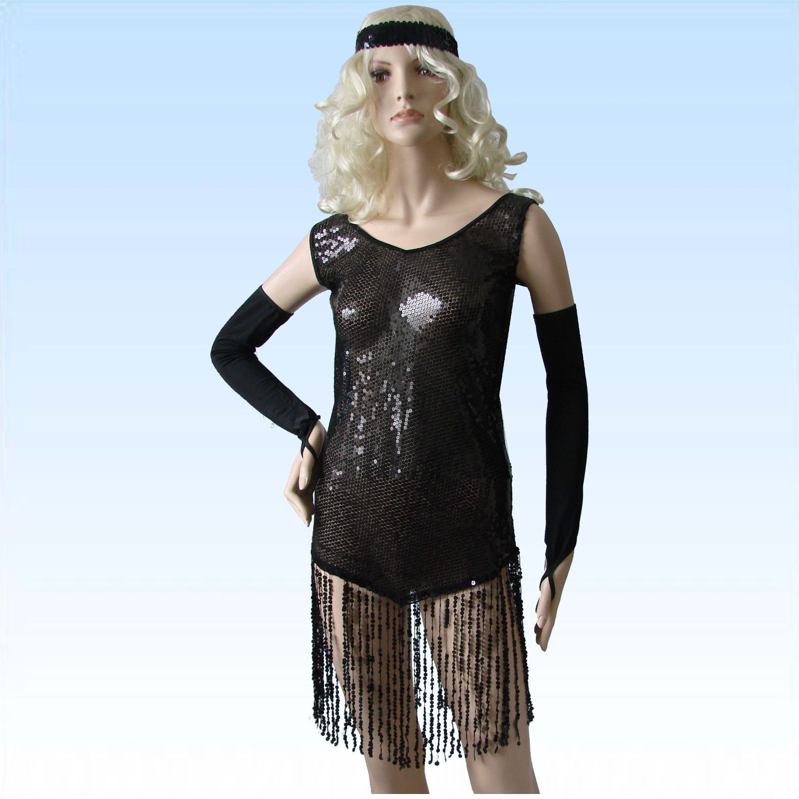 Paillettenkleid Charleston Schwarz Gr. 140/152 Kleid 20er Jahre Pailletten