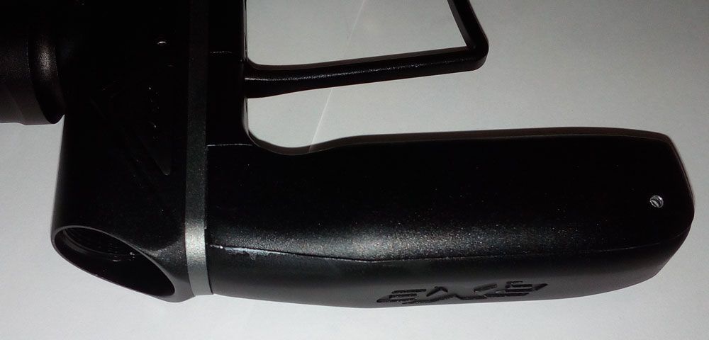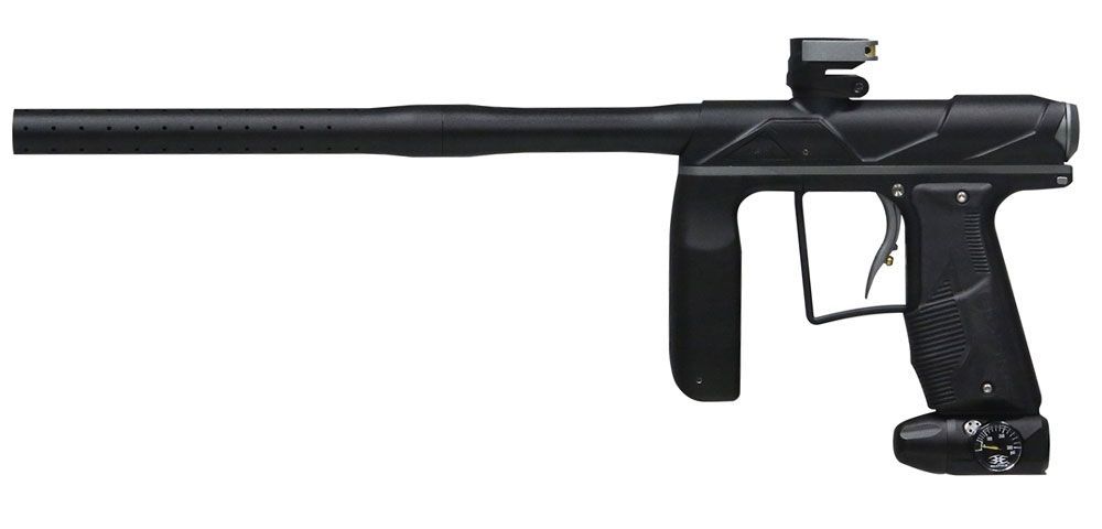Paintball Markierer Empire Axe Pro dust black grey mit Produktionsfehler am Frontgriff, siehe Foto Die Empire AXE PRO ist ab Werk mit dem Redline Oled Board ausgestattet, welches sich mit einem 5-Wege-Joystick gut bedienen lässt. Das bisherige Druckknopfsystem wurde verbessert, der ASA verkleinert u