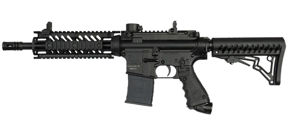 Die Tippmann TMC ist der perfekte Einstiegsmarkierer in die MagFed Welt. Die TMC ist dem Sturmgewehr AR-15 nachempfunden und kann wahlweise mit einem der 2 mitgelieferten Magazine oder mit einem Hopper Loader bgespielt werden. nur mit Caliber .50 Paintballs spielbar inkl. 2x Magazine mechanisches, p