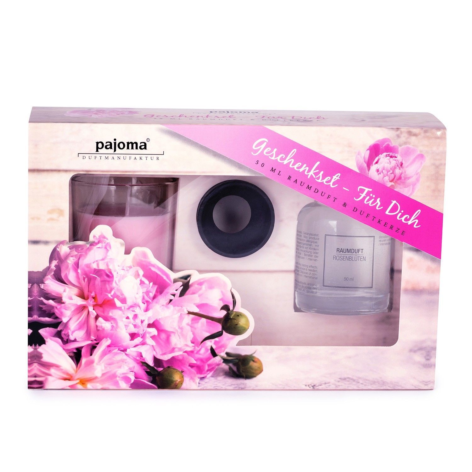 pajoma Wellness Geschenkset, 50 ml Raumduft + 45g Duftkerze Rosenblüte