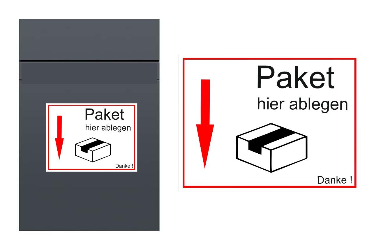 Paket hier ablegen, Abziehbild für Paketbox Aufkleber (R88w/4)