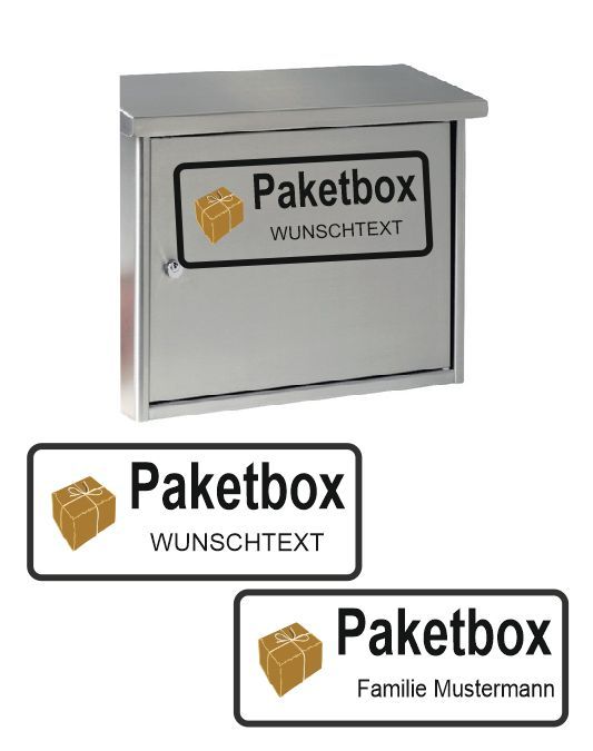 Paketbox Aufkleber mit Wunschtext Paket Box, Transparentes Abziehbild RT34/15