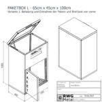 • Bitte bewegen Sie die Paketbox entweder auf kleinen Rollwagen oder wenigstens zu zwei Personen.