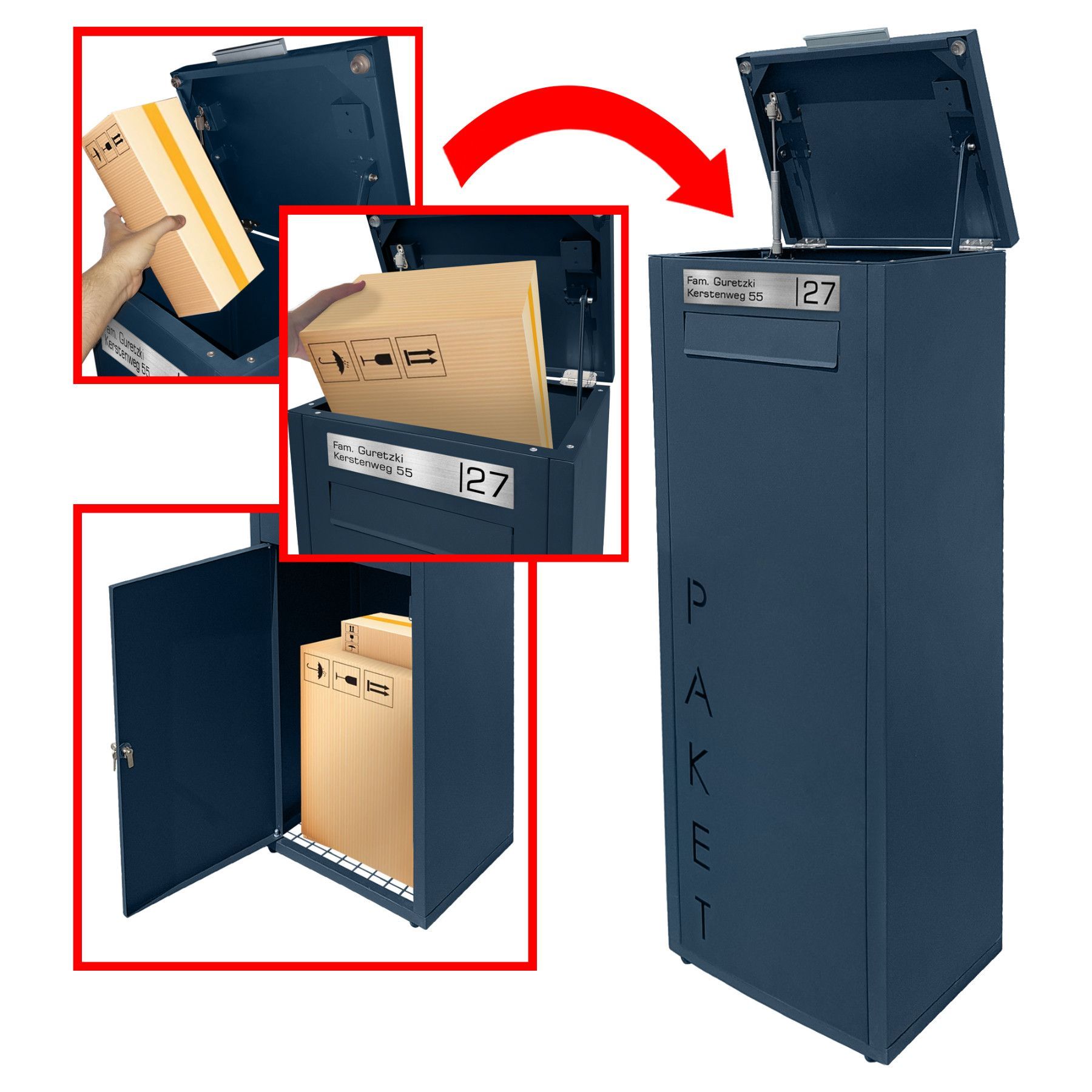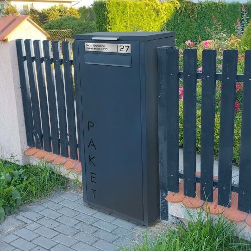 • Bitte bewegen Sie die Paketbox entweder auf kleinen Rollwagen oder wenigstens zu zwei Personen.