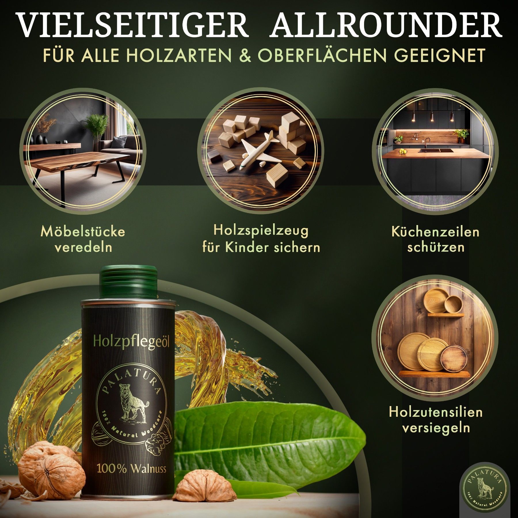 Palatura Walnussöl für Holz, Umweltfreundliches Holzöl für Außen & Innen