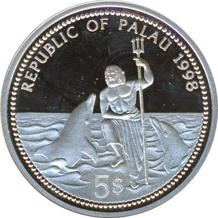 Palau 5 Dollars 1998 PP Marine Life Protection Silber in Farbe*