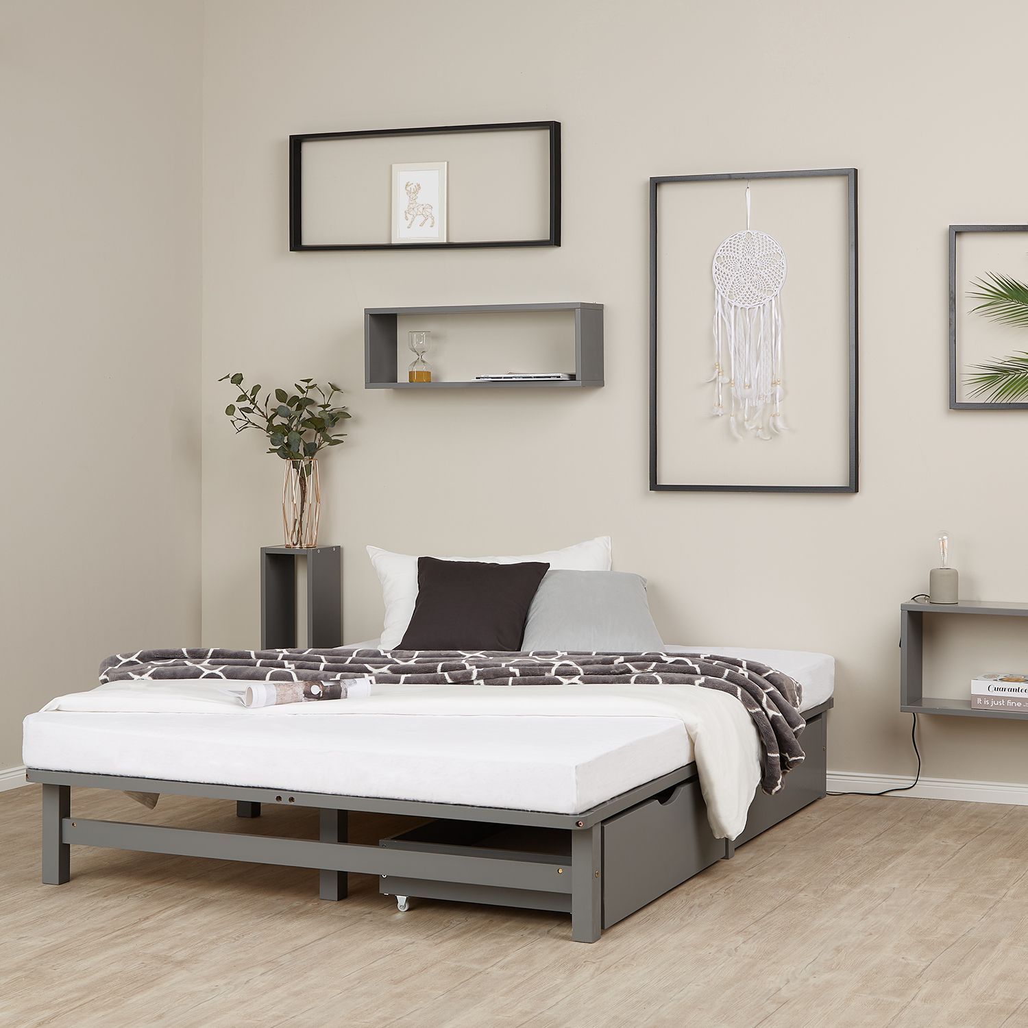 Palettenbett 140x200 cm mit Bettkasten 2er Set Lattenrost Holzbett Palettenmöbel Bett