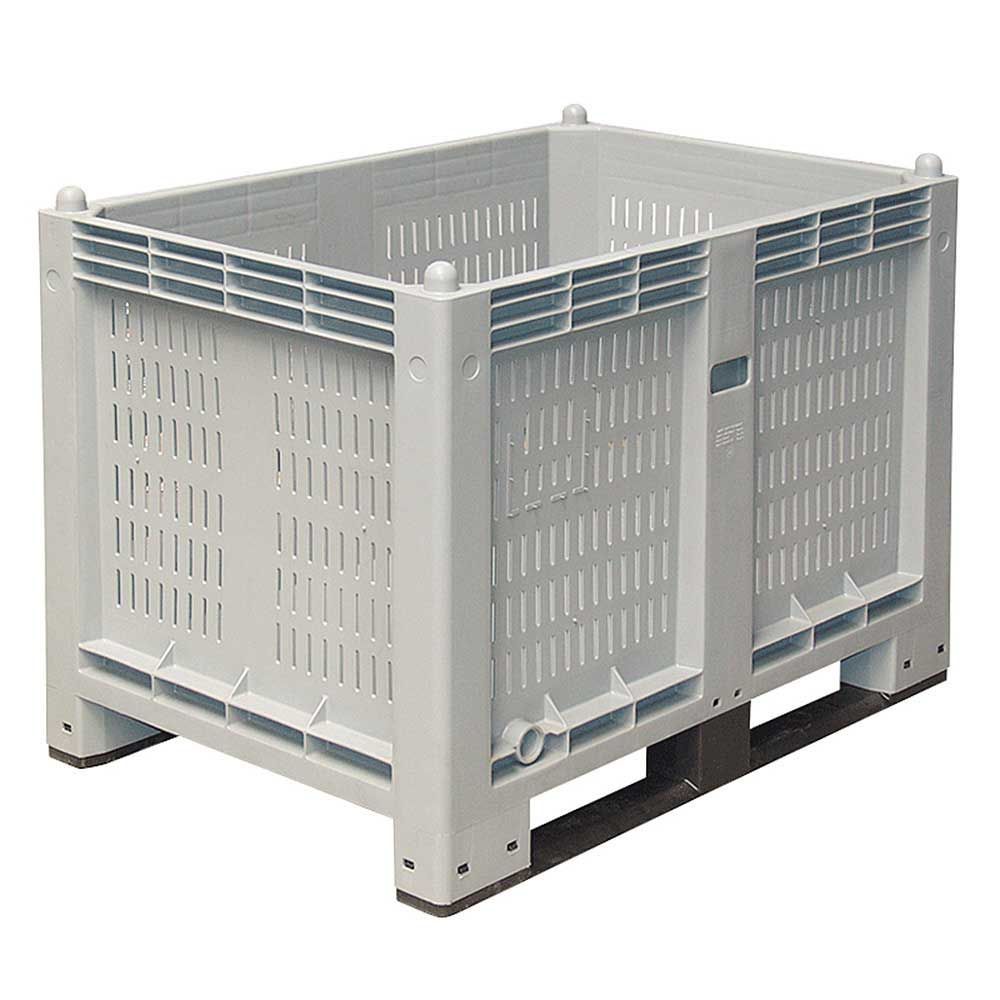 Palettenbox mit 2 Kufen, LxBxH 1200 x 800 x 850 mm, Wände geschlitzt