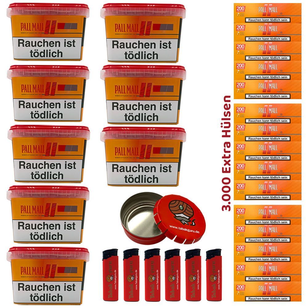 Pall Mall Allround Tabak Mega Box 8x 145g, 3000 Allround Hülsen, Feuerzeuge