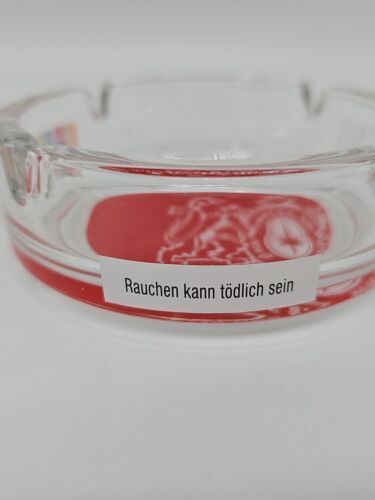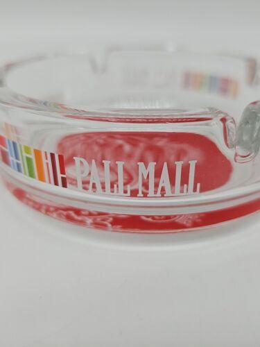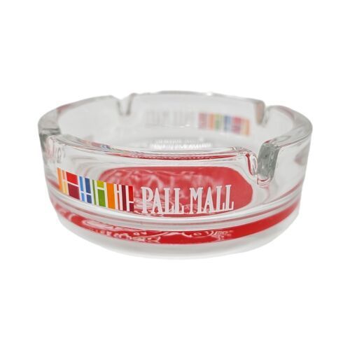 Pall Mall Aschenbecher 11 cm Glas Rund Transparent Rot Zigaretten Werbung Neu