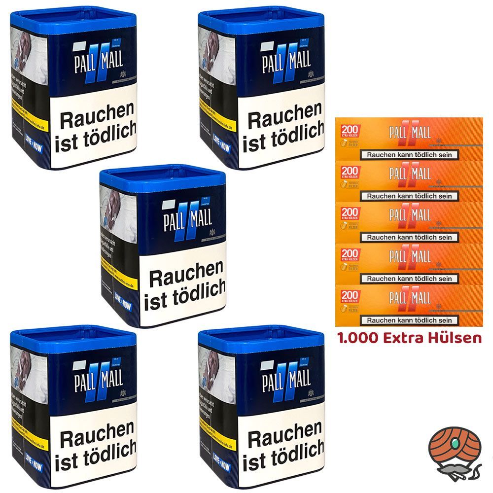 Pall Mall Blue/Blau Tabak Dose 5x 40g + 1000 Pall Mall Allround Hülsen