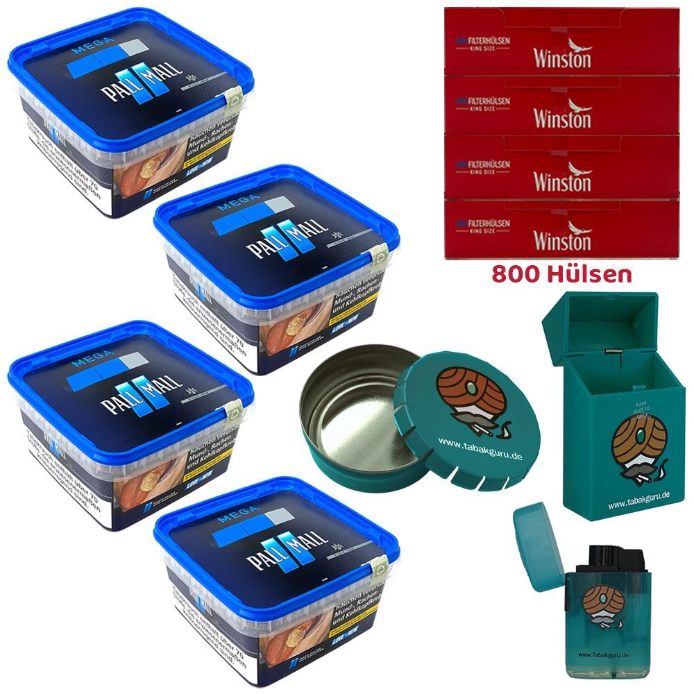 Pall Mall Blue/Blau Tabak Mega Box 4x 120g, Winston Hülsen, Ascher, Zubehör