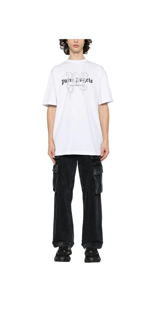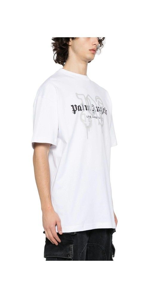 Palm Angels Los Angeles Monogram Print T Shirt Weiß Herren
