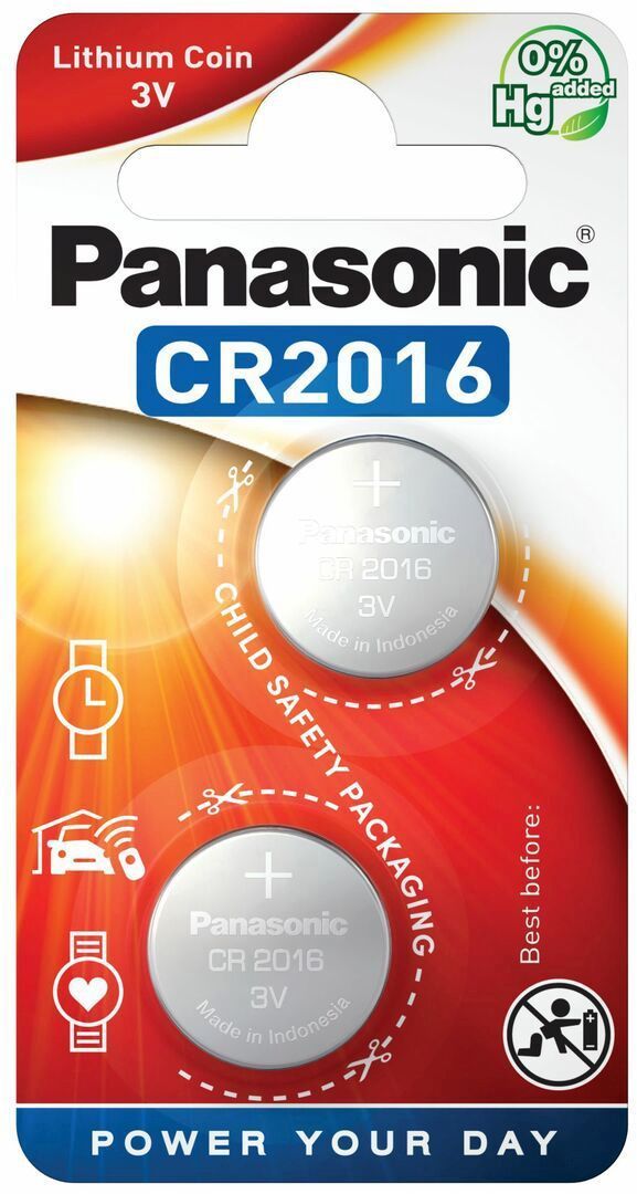 Panasonic Panasonic Knopfbatterie Lithium, CR 2016, 2 Stück
