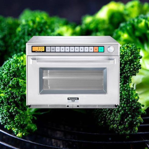 Panasonic Mikrowelle NE-1880 Vollelektronisches Gerät Leistung 1800 W Großer Edelstahlraum 44 Liter Für 1 1 Gastronormbehälter oder 4 Teller Durchschnitt 27 cm 2 Ebenen 16 Speichertasten frei programmierbar Intervallsteuerung Elektronische 60 Min.-Zeitschaltuhr Automatische Fehlerdiagnosesystem Anza