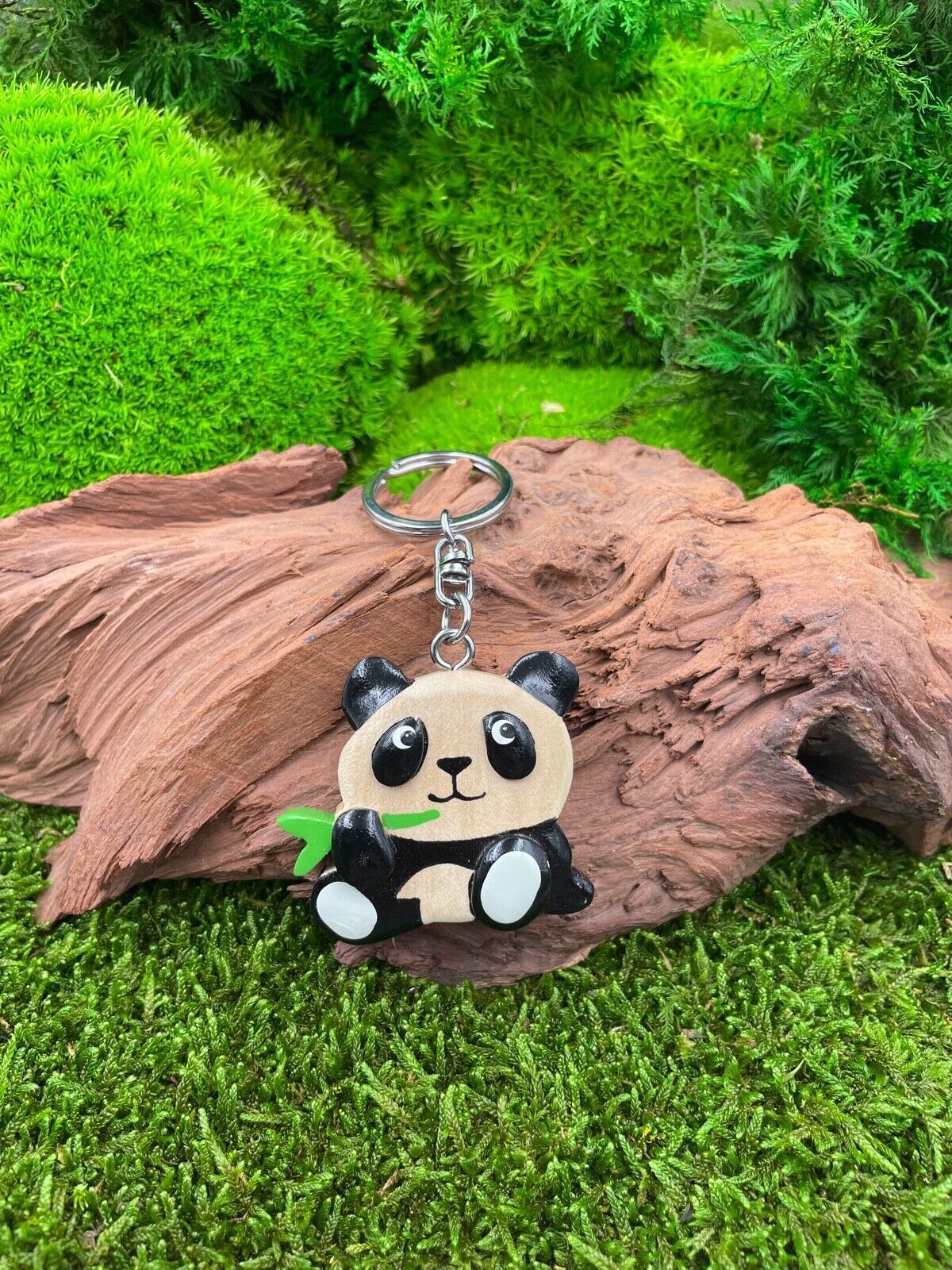 Panda Bambus Tier Schlüsselanhänger Metall Glücksbringer Anhänger Geschenk