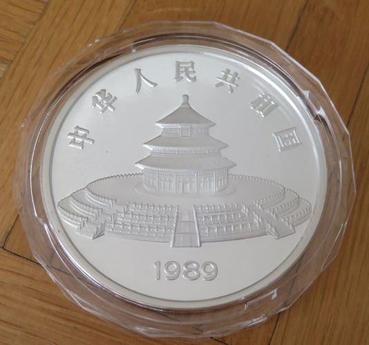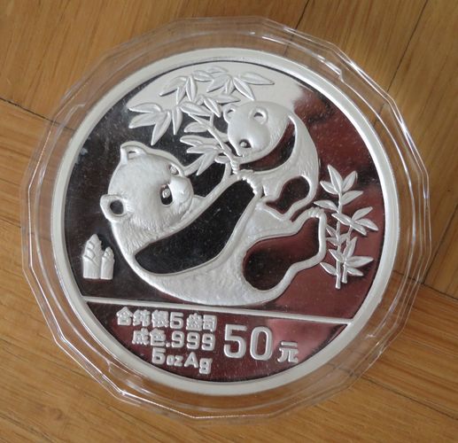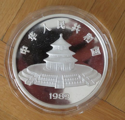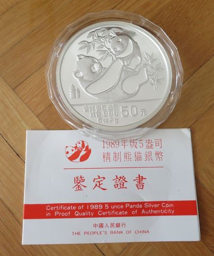 Panda Münze 1989 Proof PP 50 Yuan 5 OZ Silber mit Zertifikat