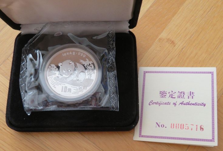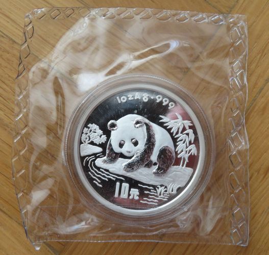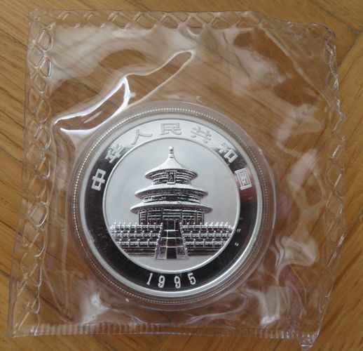 Panda Münze 1995 China 10 Yuan1 Unze Silber Rarität in Folie mit Zertifikat