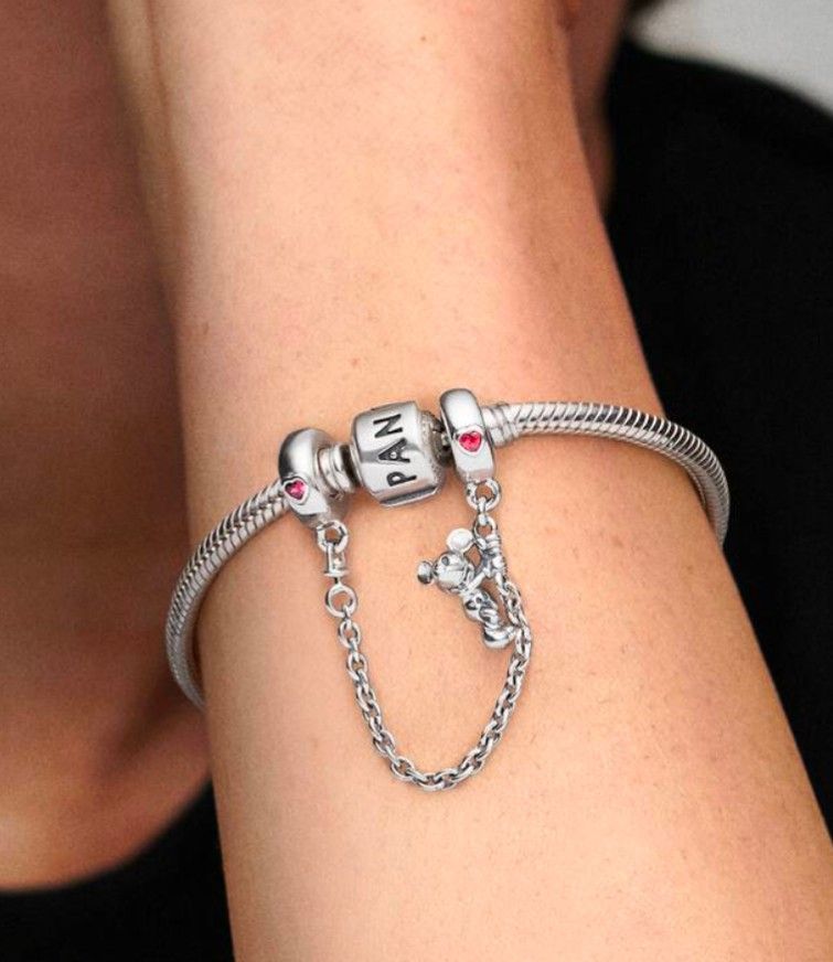 Schmuck-Material: 925er Silber Stein: Zirkon Marke: Pandora Verpackung: Originalschachtel von Pandora Beschreibung Sicherheitskette für Damen von Pandora aus der Disney-Kollektion. Sicherheitskette mit Mickey Mouse Schmuckstück aus 925er Silber und mit roten Zirkonia besetzt. Sicherheitskette, 50 mm