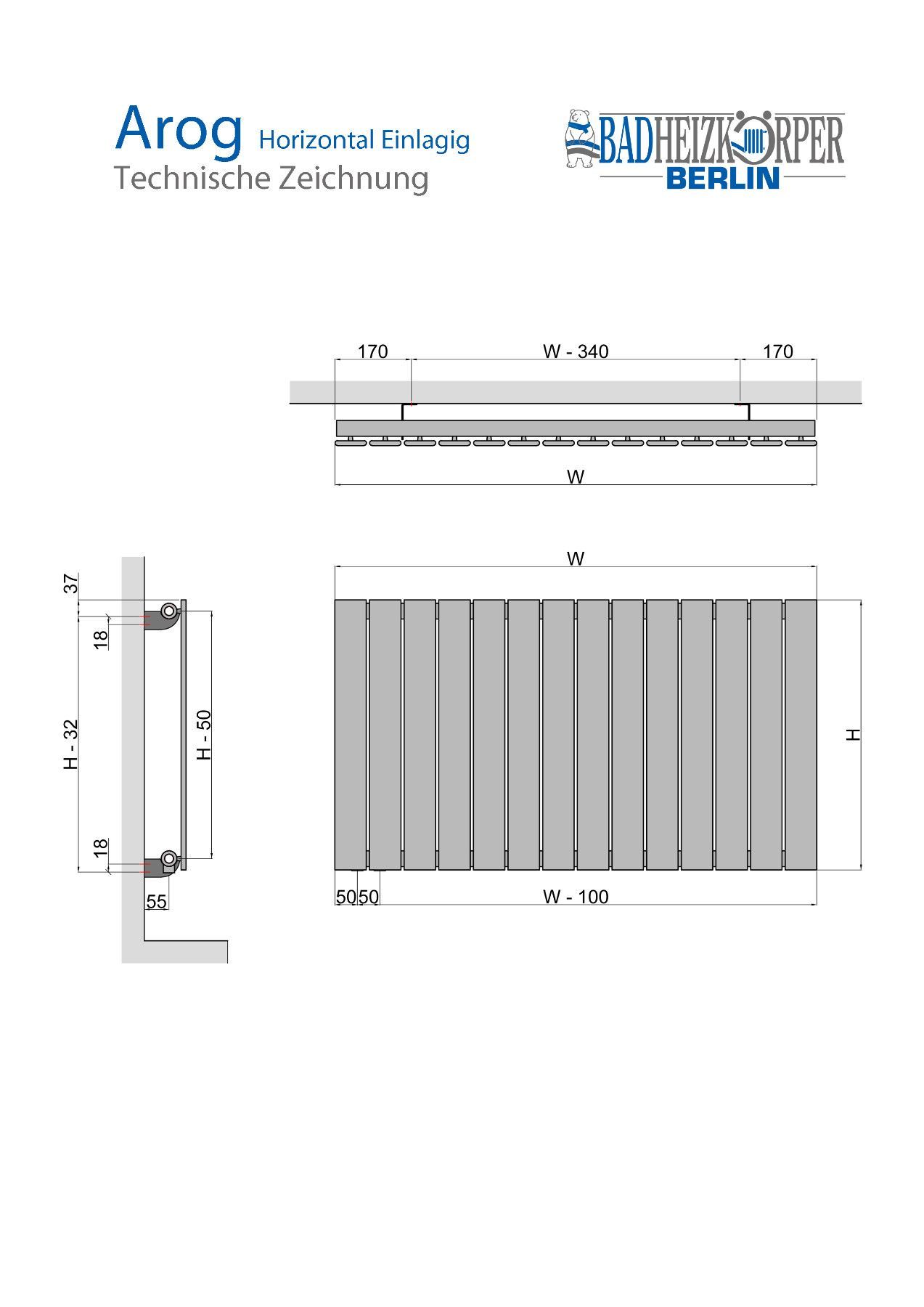 Paneel Heizkörper Badheizkörper AROG Horizontal einlagig single Weiß / Grau Antrazit