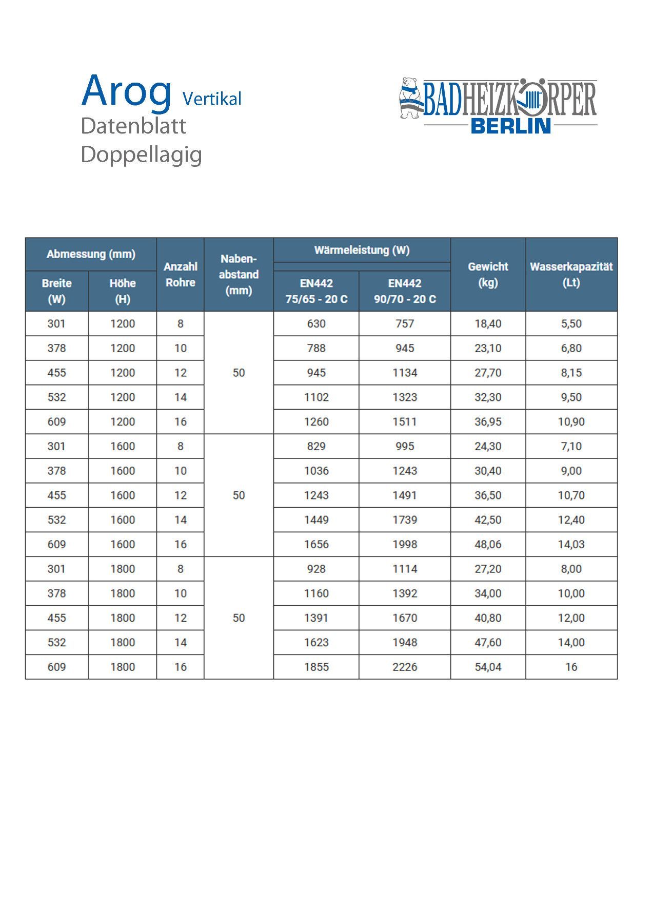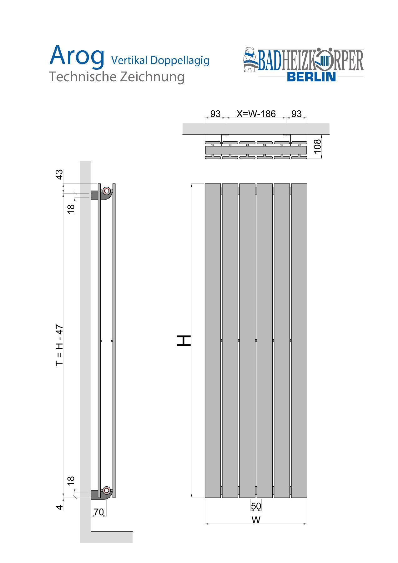 Paneel Heizkörper Flach Badheizkörper AROG Vertikal doppellagig / double Weiß