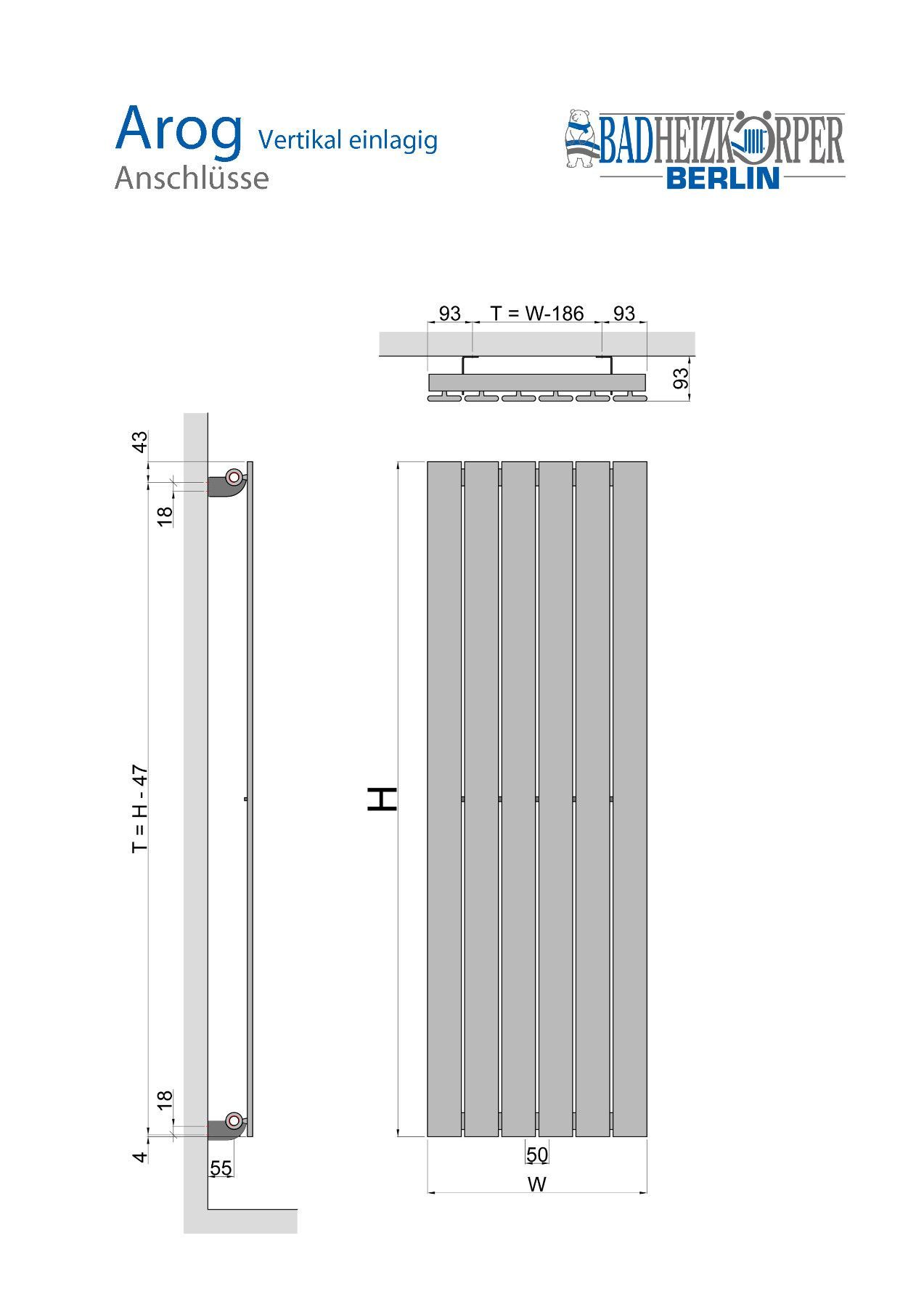 Paneel Heizkörper Flach Badheizkörper AROG Vertikal einlagig / single Grau Anthrazit