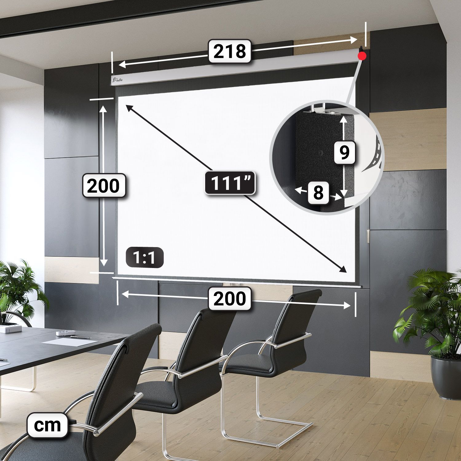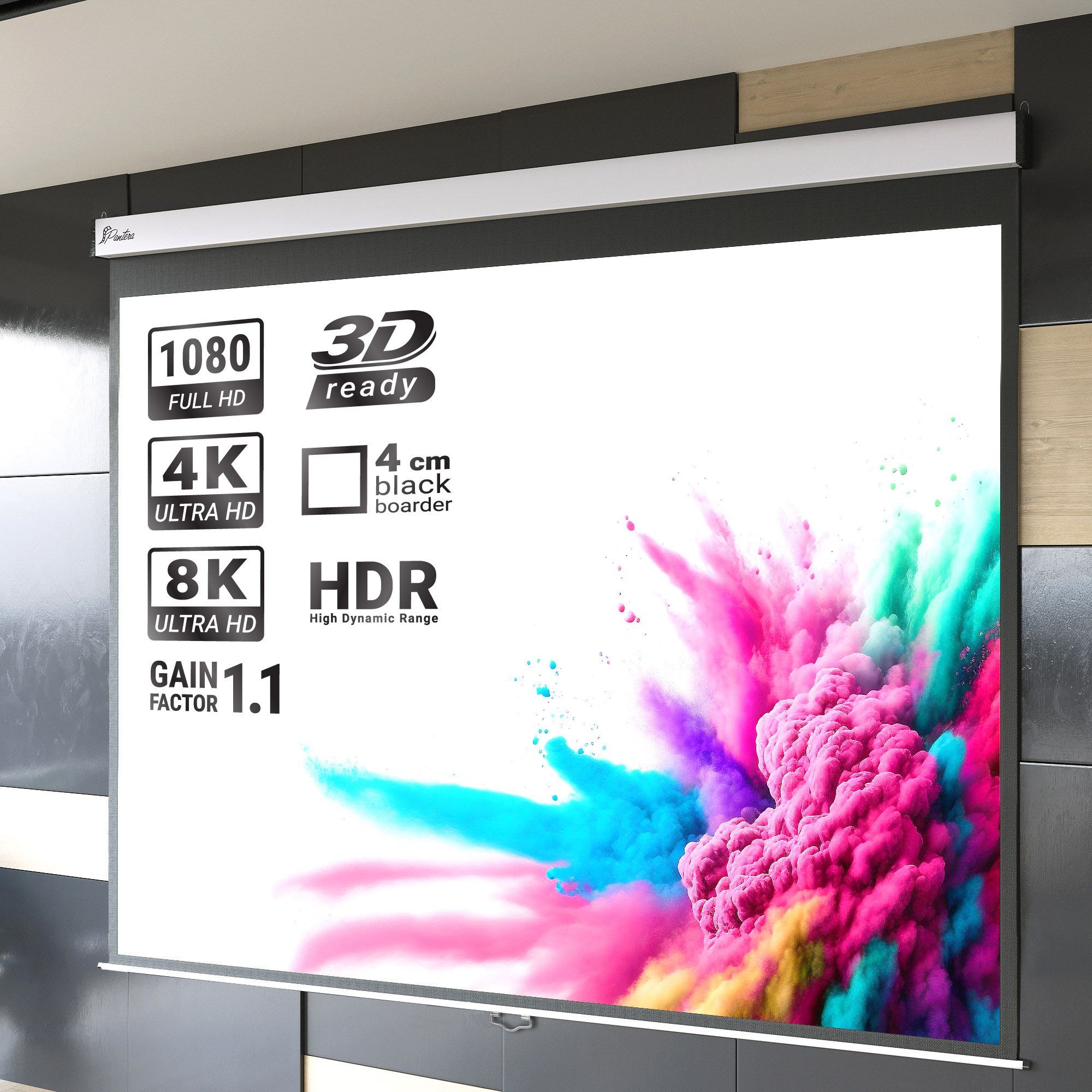 Pantera | Rolloleinwand | 200 x 200 cm | 111" | 1:1 | Manuell | 4K/8K Ultra HDR 3D |