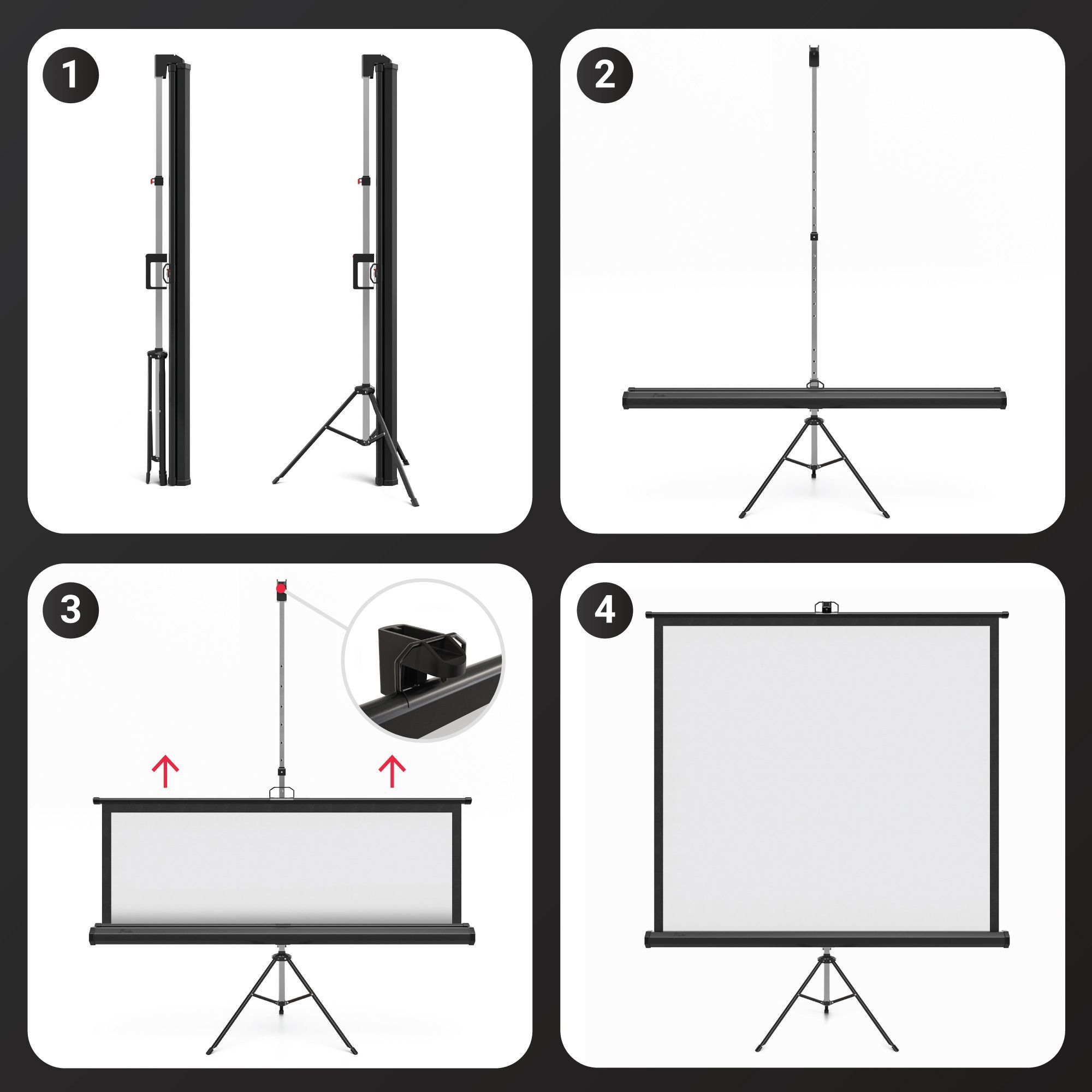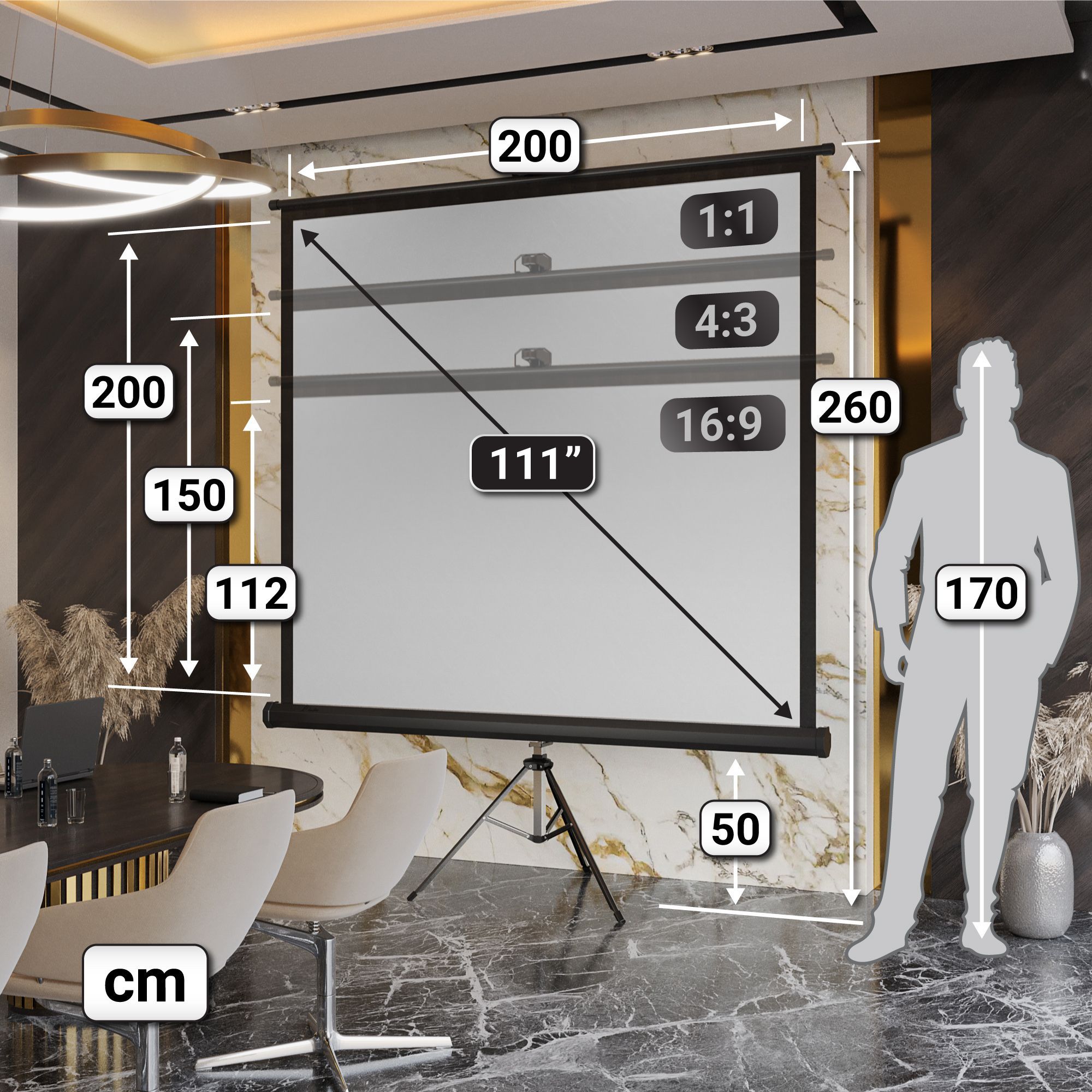 Pantera | Stativleinwand | 200 x 200 cm | 111" | 1:1 | 4K/8K Ultra HDR 3D | Beamerle