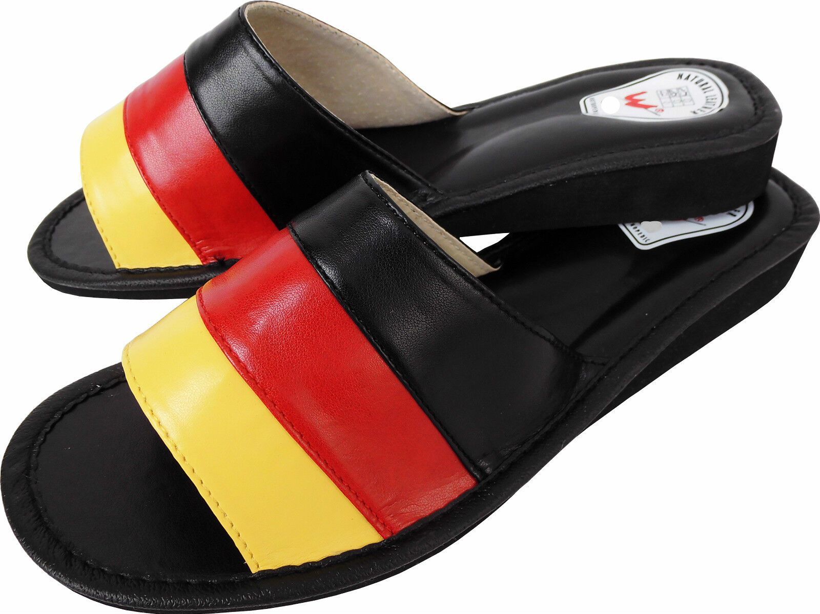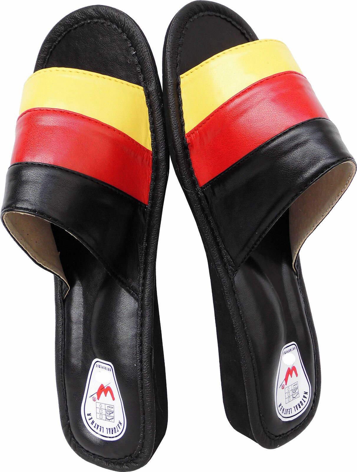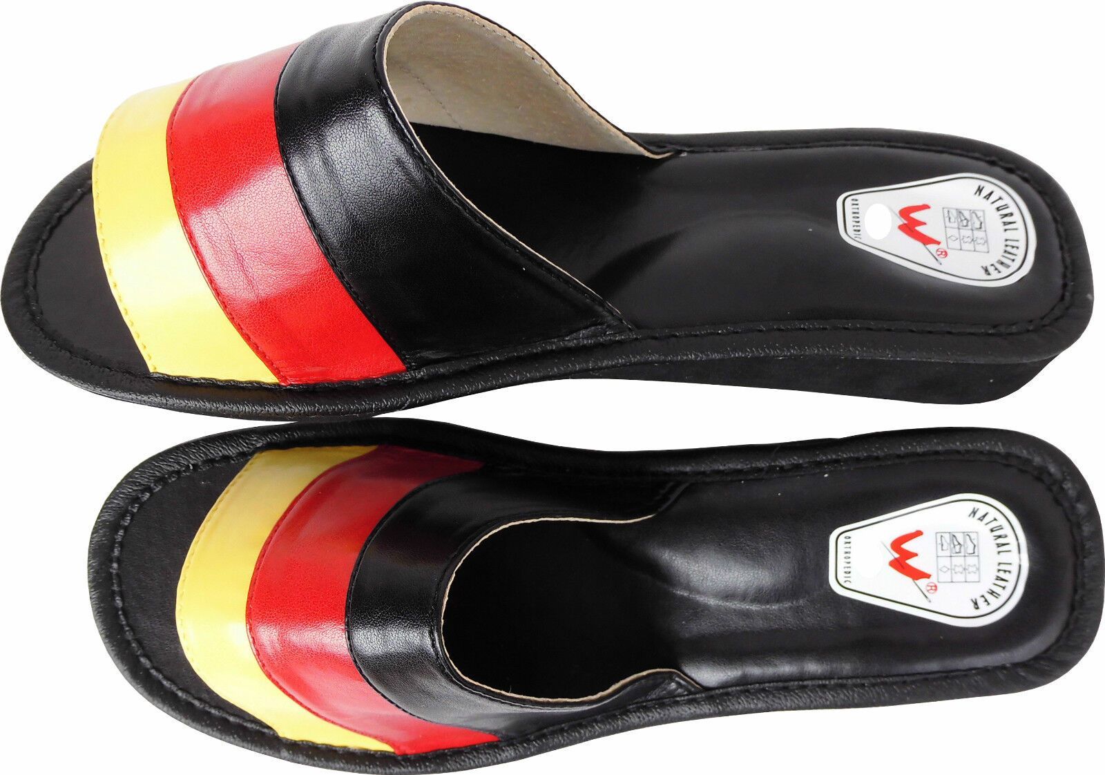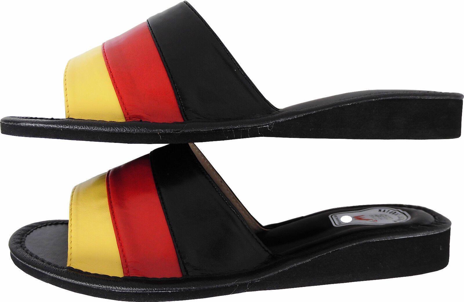 ****Sehr schöne und bequeme Hausschuhe - Latschen - Pantolette Gr.35 Kunstleder ****Obermaterial aus hochwertigem, weichem Kunstleder (ECO LEDER) ****Die Sohle besteht aus Gummi (rutschfest) **** Farbe - Schwarz - Rot - Gelb ****Neu, keine billig Ware, sehr stabile Ausführung ****Hergestellt in PL S