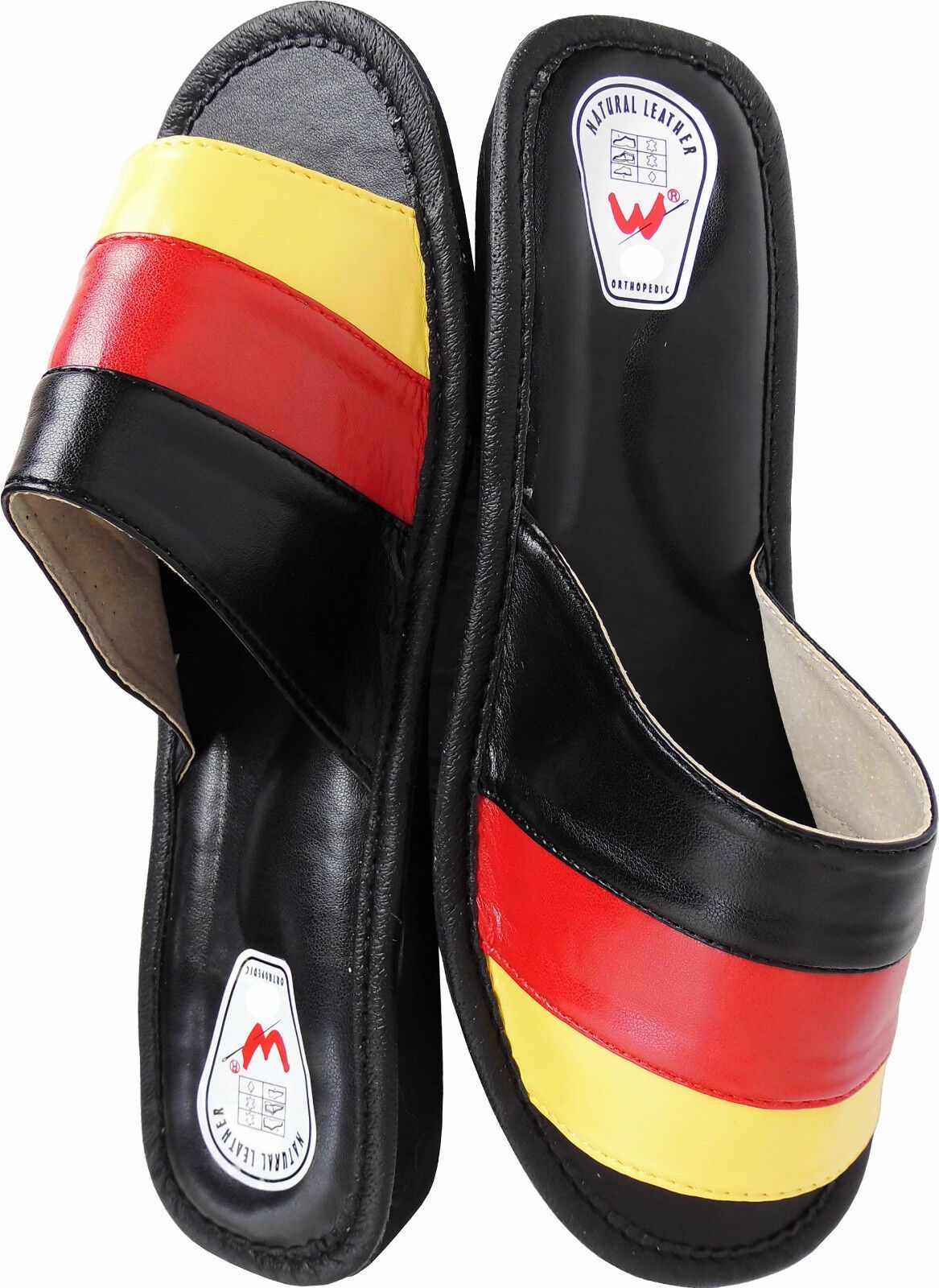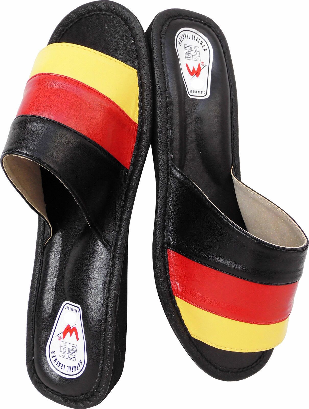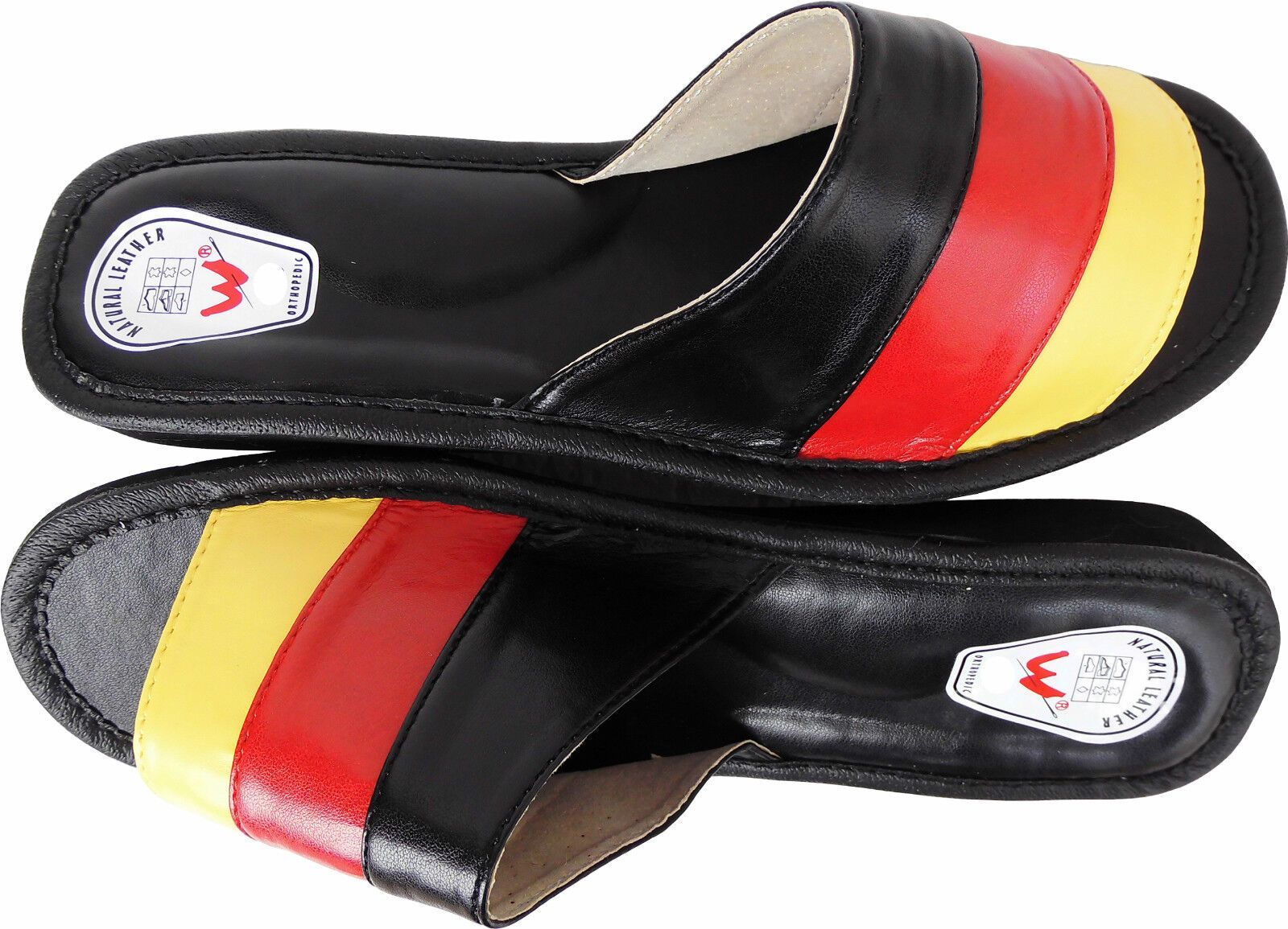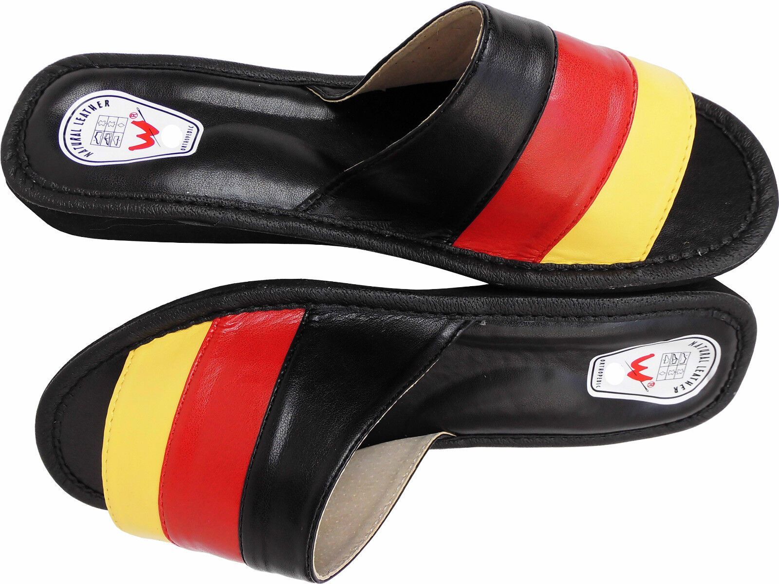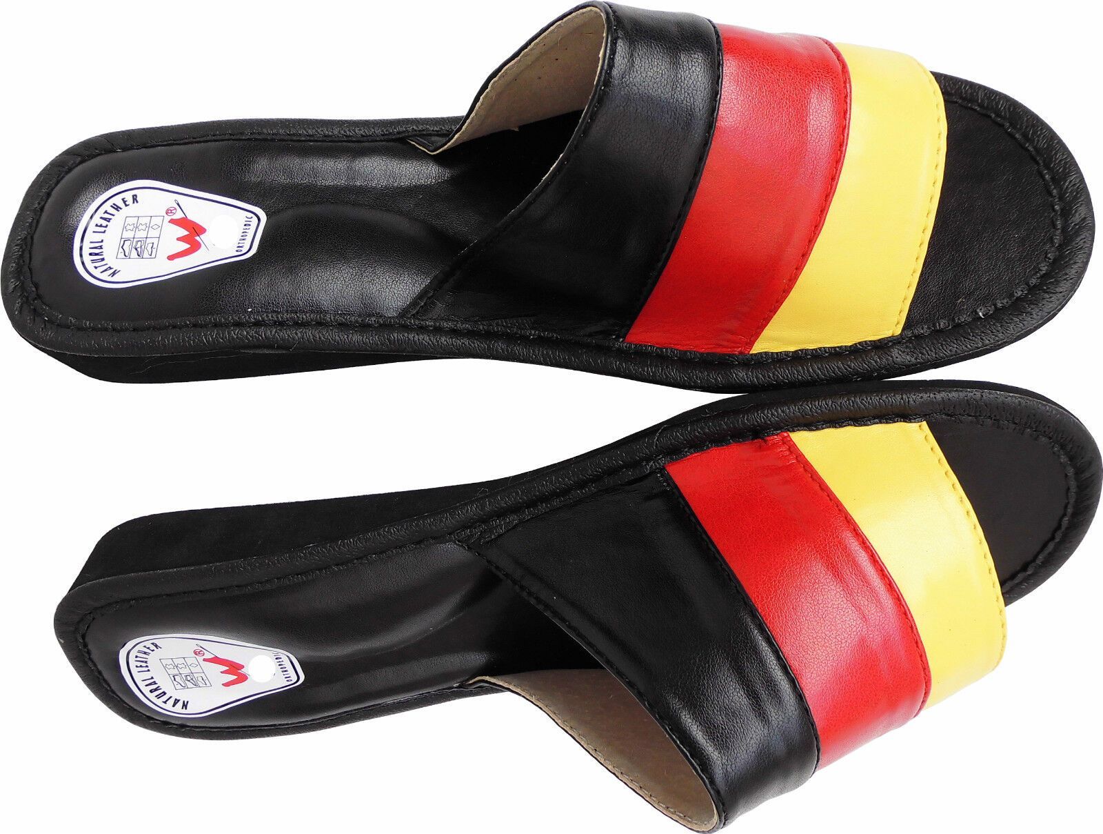 ****Sehr schöne und bequeme Hausschuhe - Latschen - Pantolette Gr.35 Kunstleder ****Obermaterial aus hochwertigem, weichem Kunstleder (ECO LEDER) ****Die Sohle besteht aus Gummi (rutschfest) **** Farbe - Schwarz - Rot - Gelb ****Neu, keine billig Ware, sehr stabile Ausführung ****Hergestellt in PL S