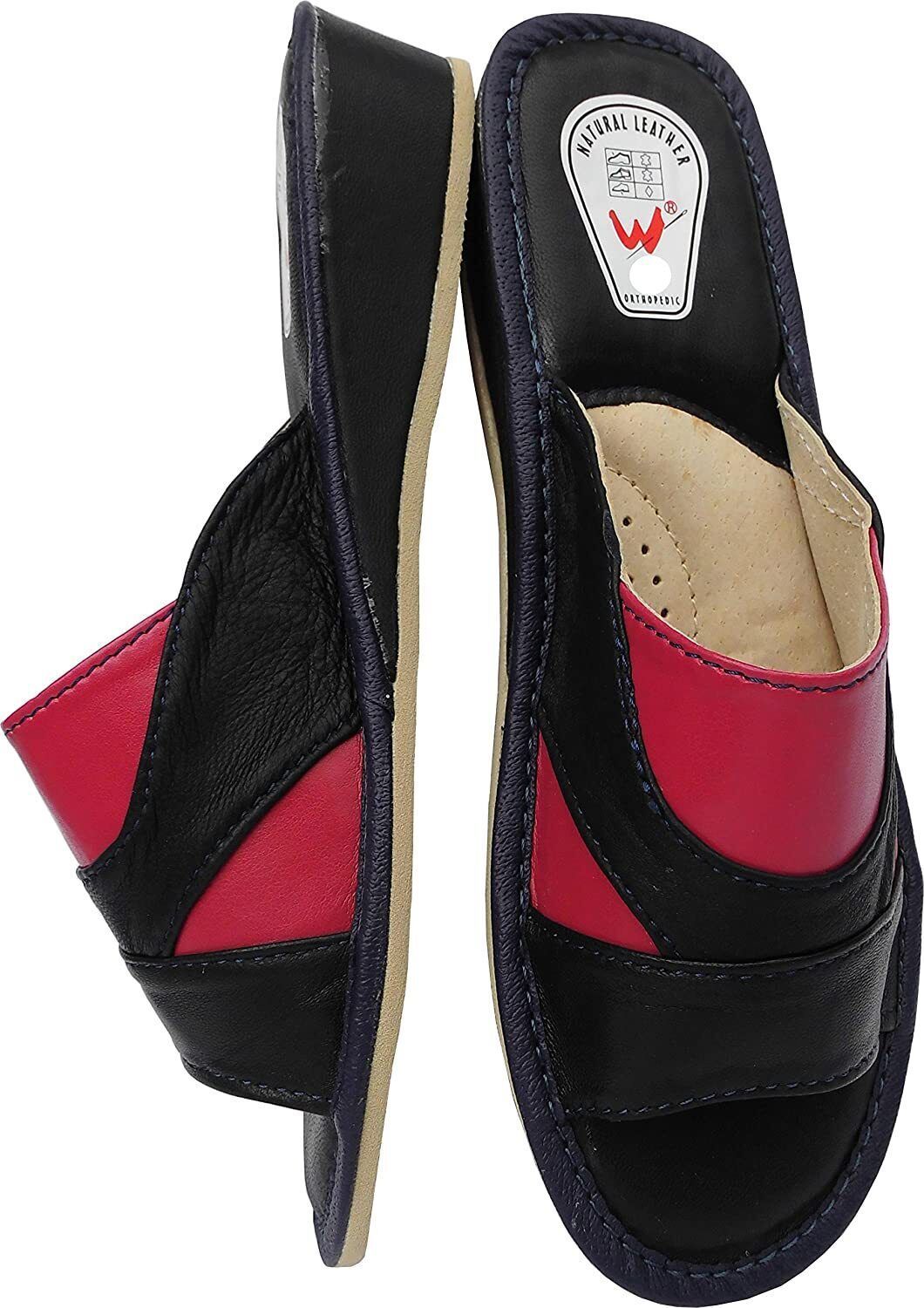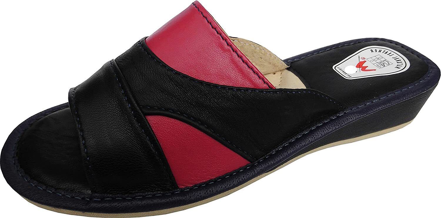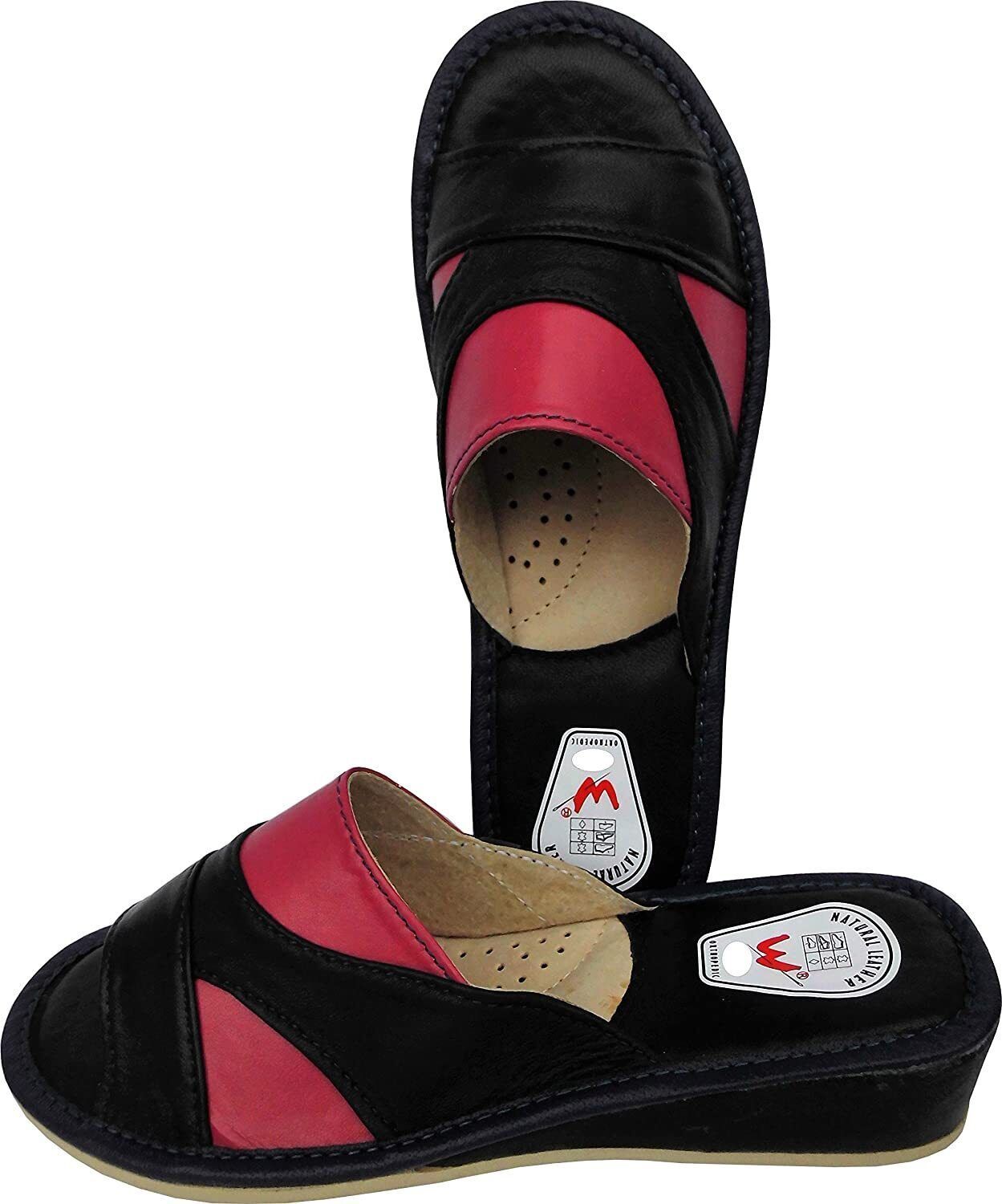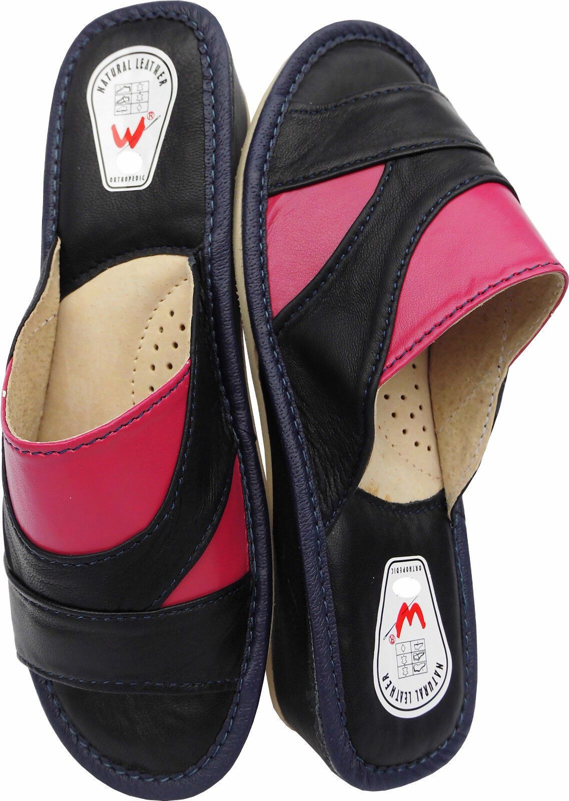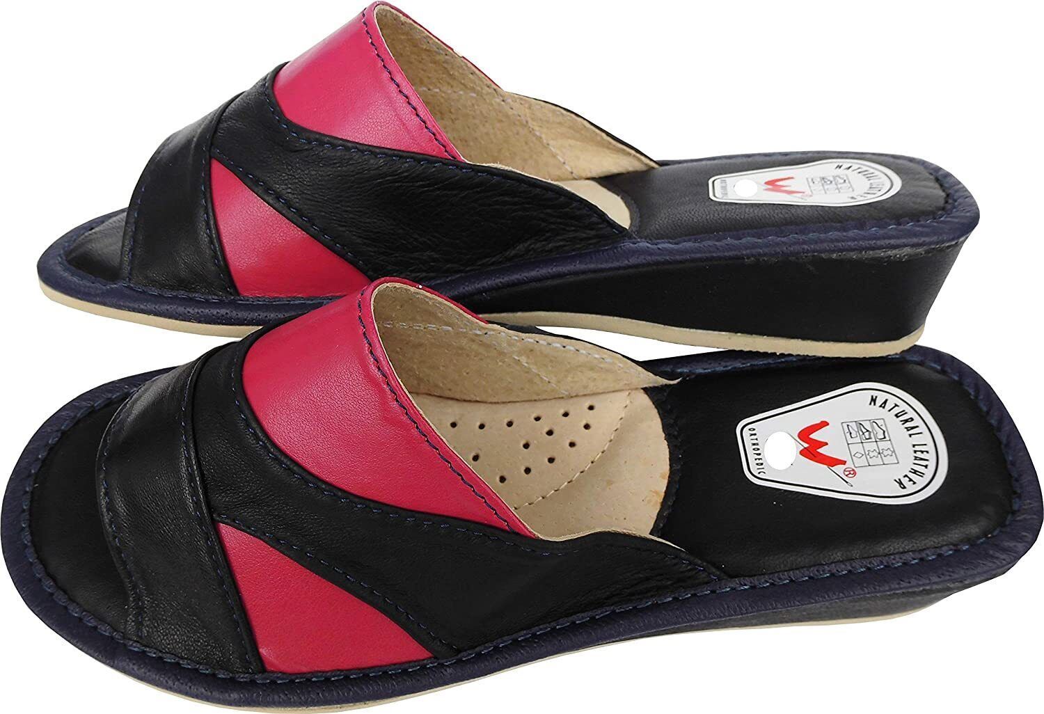 Pantolette Hausschuhe Gr.35 LEDER Dunkel Blau-Pink (Made in Poland 6-02-4-00) -28