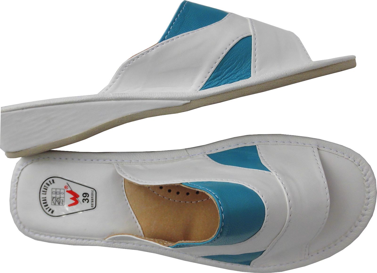 Pantolette Hausschuhe Gr. 39 LEDER (Made in Poland 9-7-395)