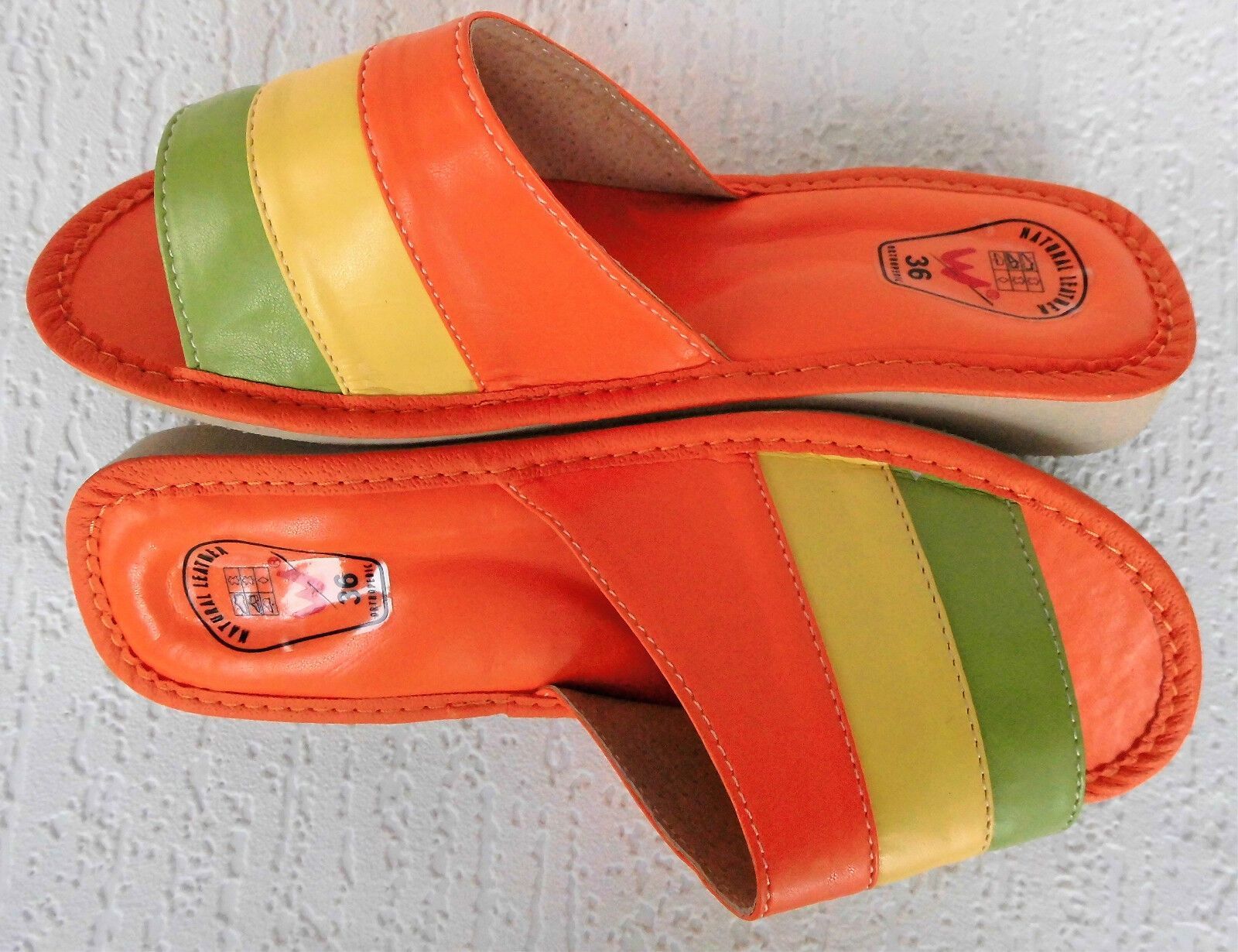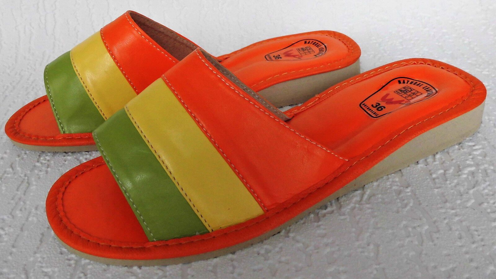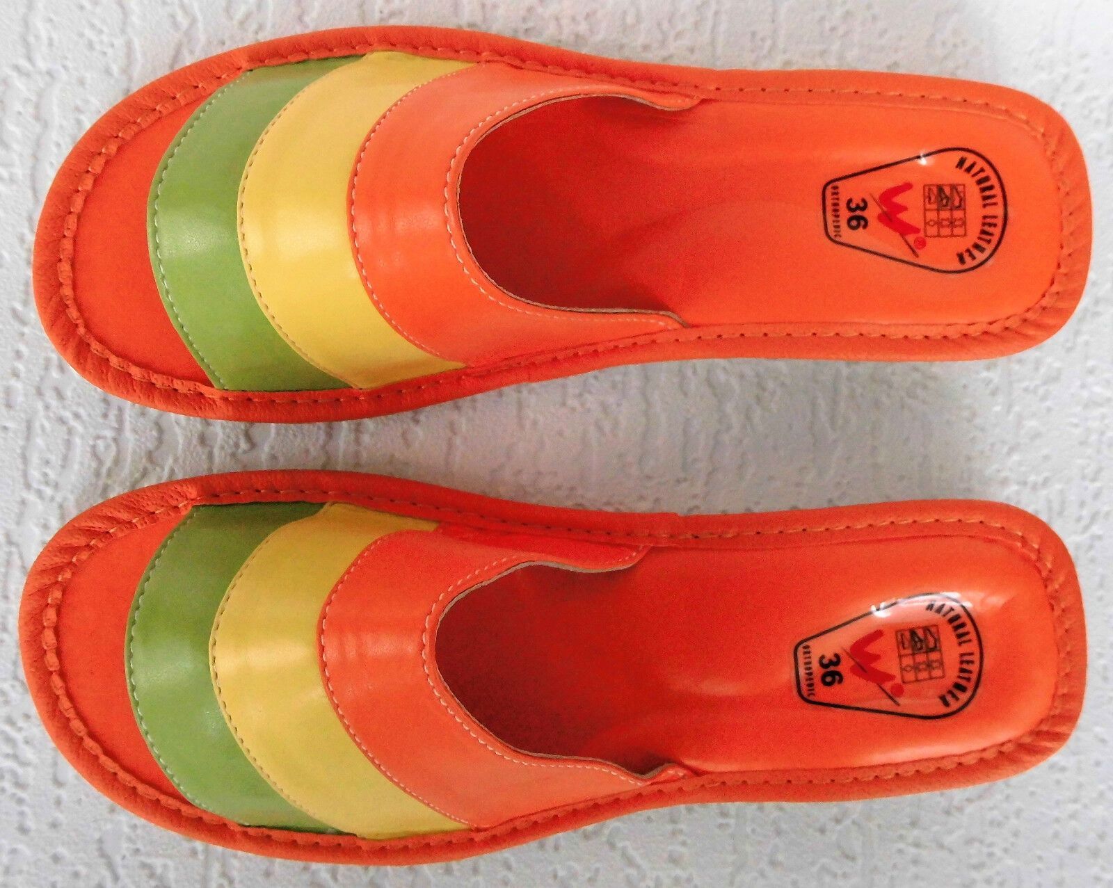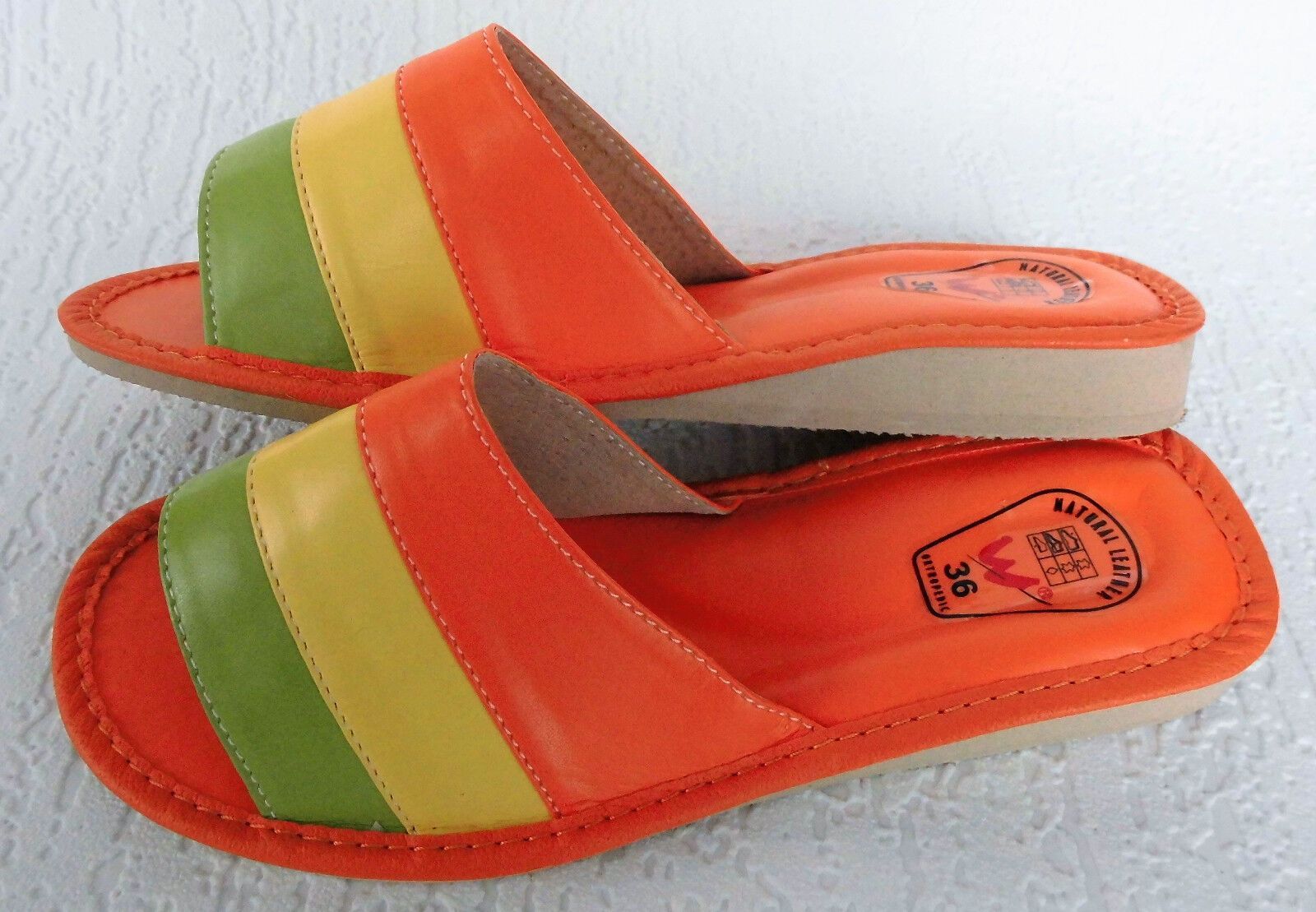 Pantolette -Latschen Gr.36 -Kunst LEDER weich&leicht - Orange-Grün- Gelb