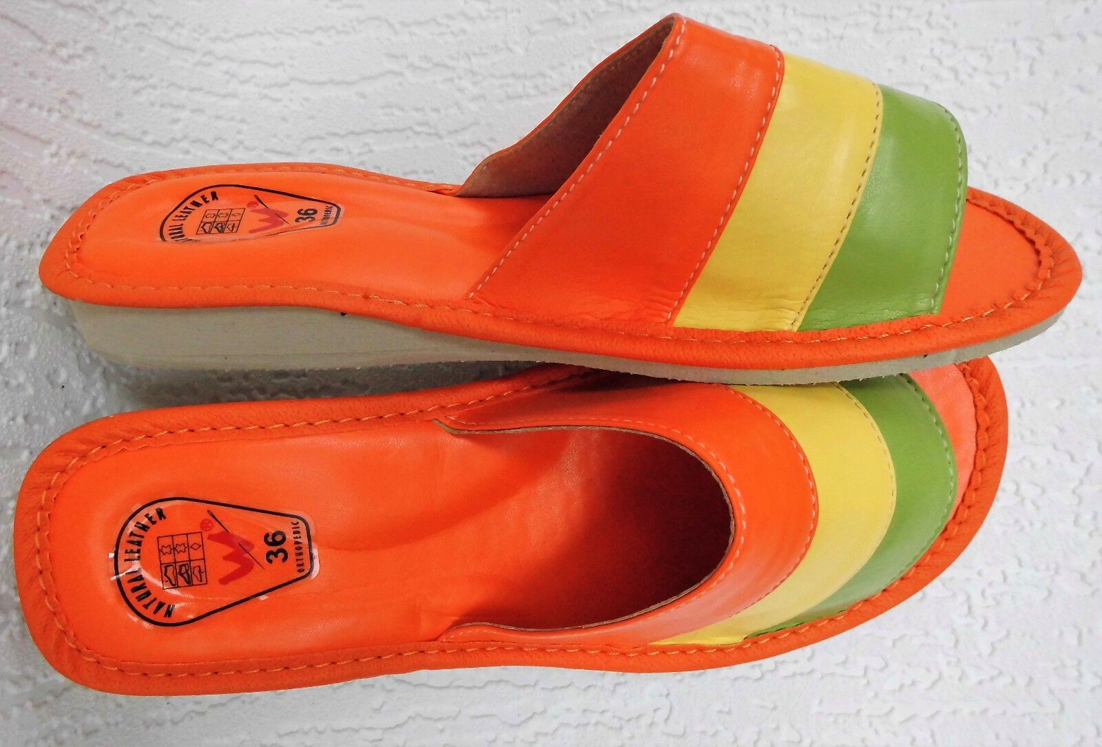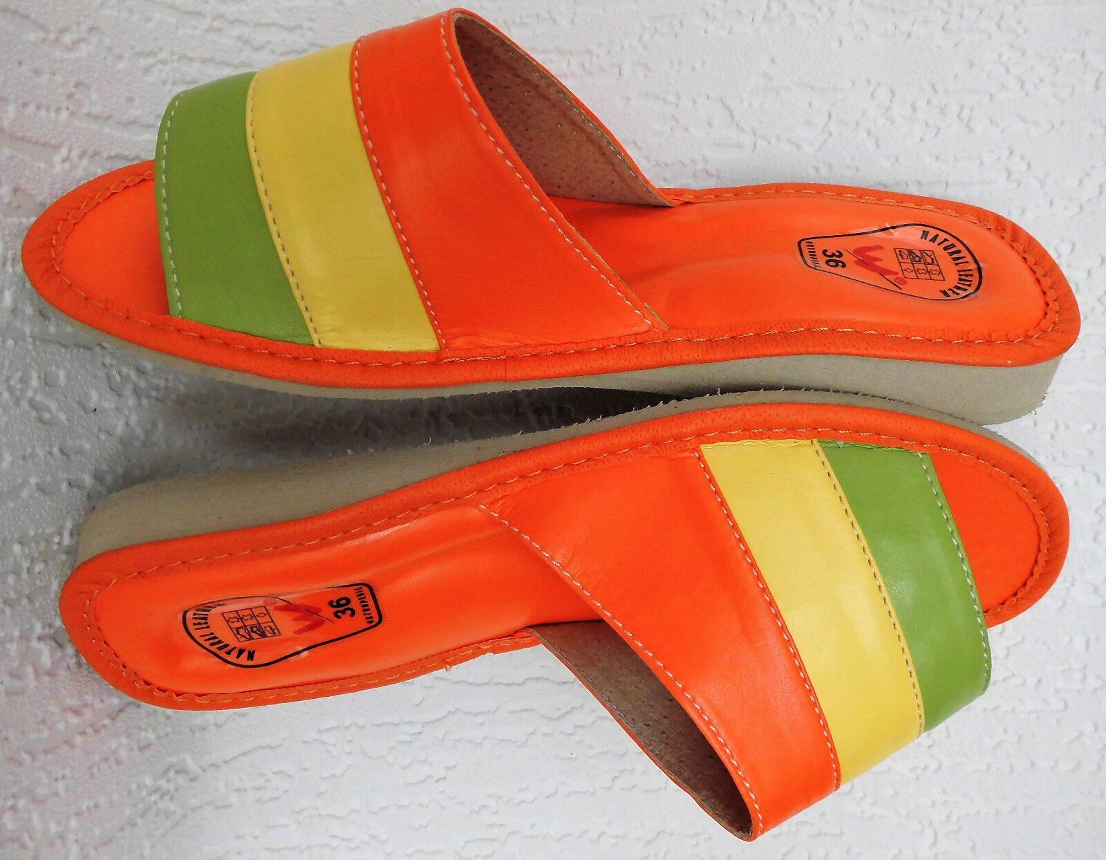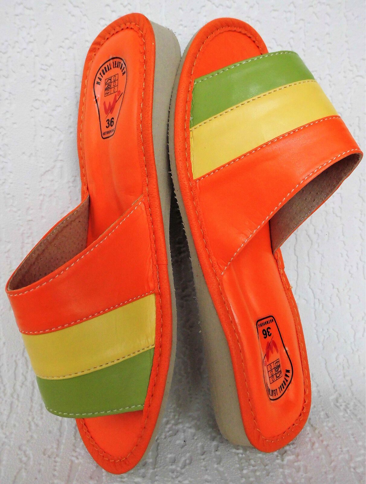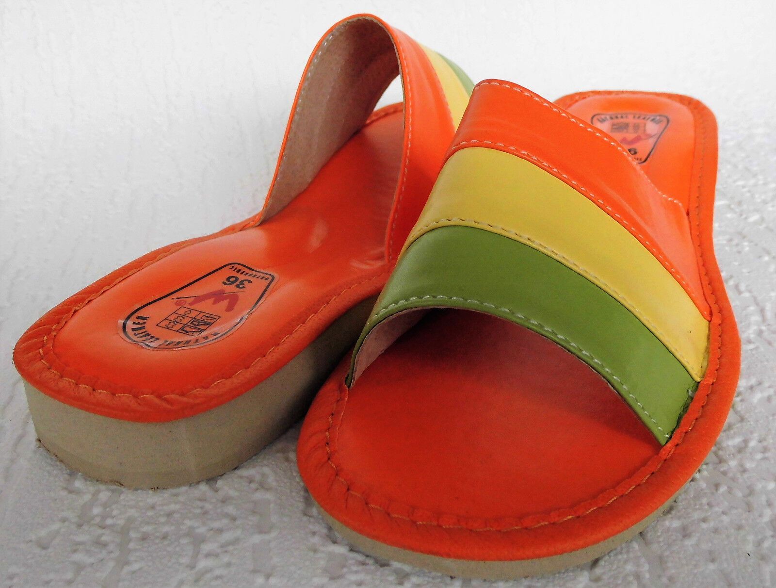 Pantolette -Latschen Gr.36 -Kunst LEDER weich&leicht - Orange-Grün- Gelb