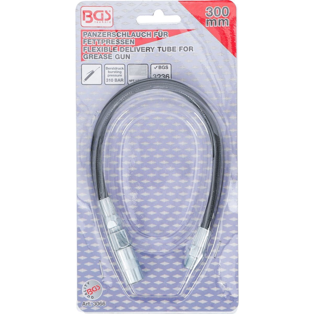BGS Panzerschlauch für Fettpressen Gewinde NPT 1/8"x27 Kartuschenschlauch 300 mm