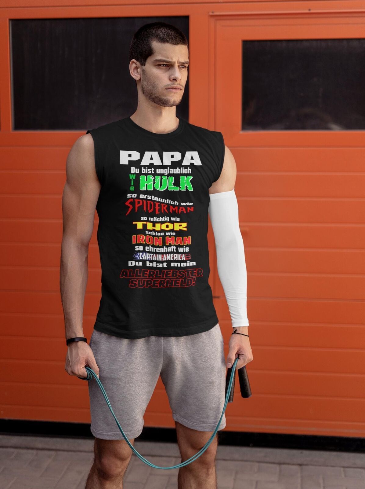 Papa Superheld Herrentag Vatertag Geschenk Print Tshirt T- Shirt Herren B14