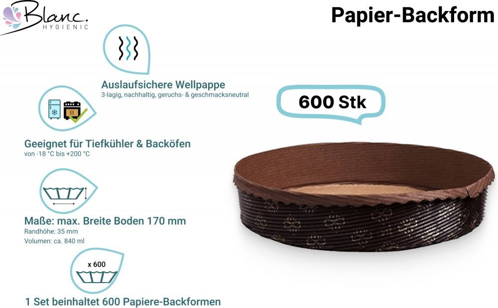 Papier-Backformen Apfelkuchen, 600 Stück, 170x35mm, 840ml, Backofen geeignet, alumini